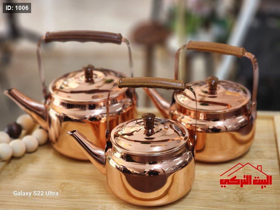 طقم 3 اباريق شاي ستيل لون نحاسي