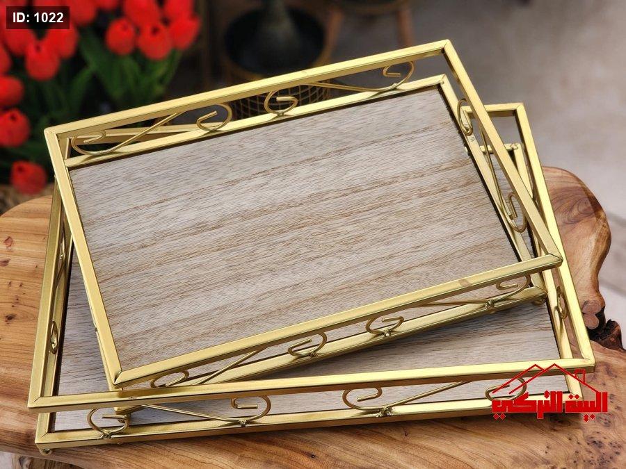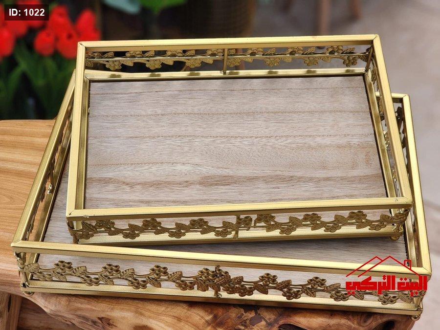 طقم صواني خشب اطار معدن مطلي /2