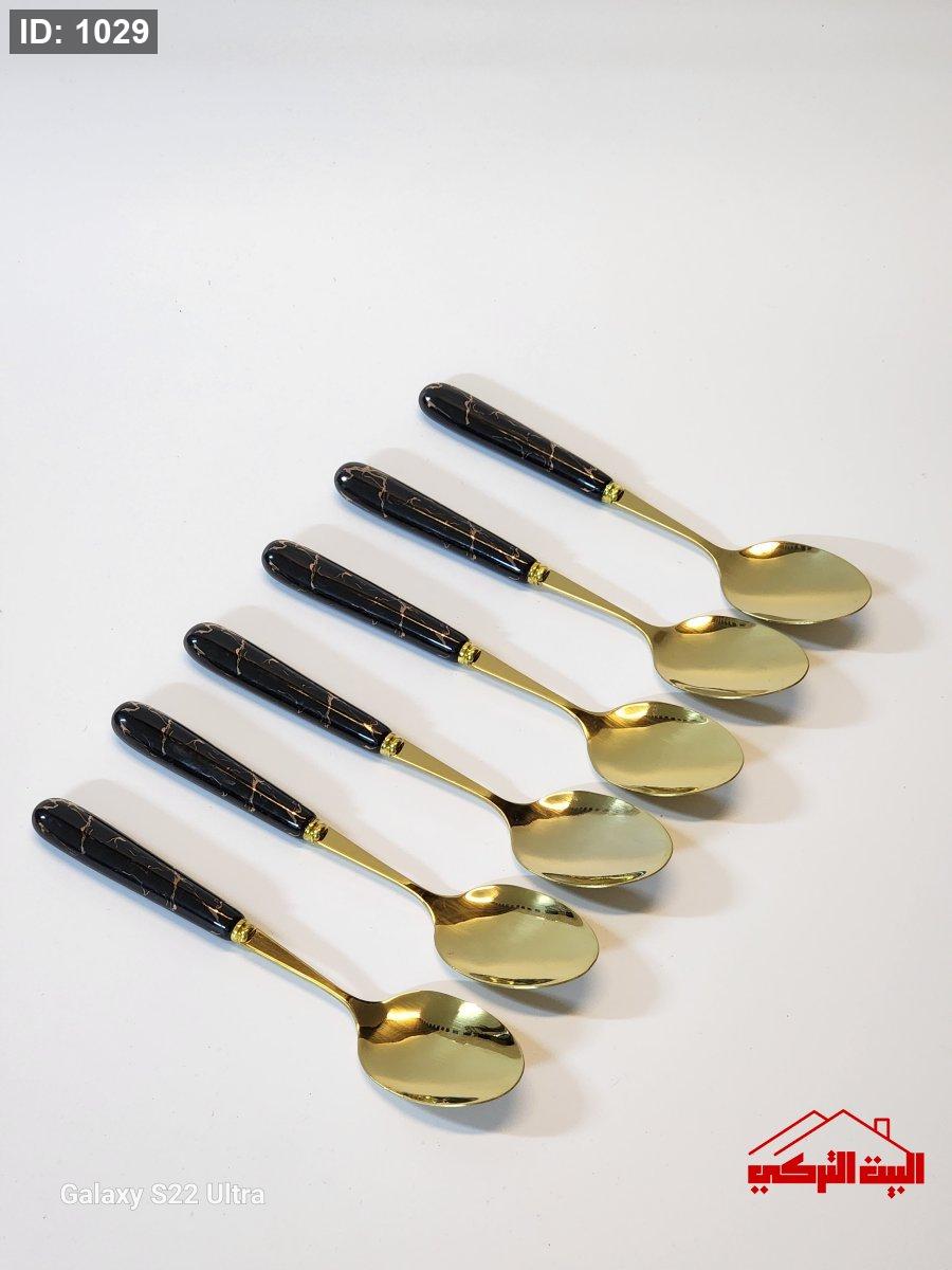 معالق /6 ذهبي صغير يد بورسلان ماربل اسود