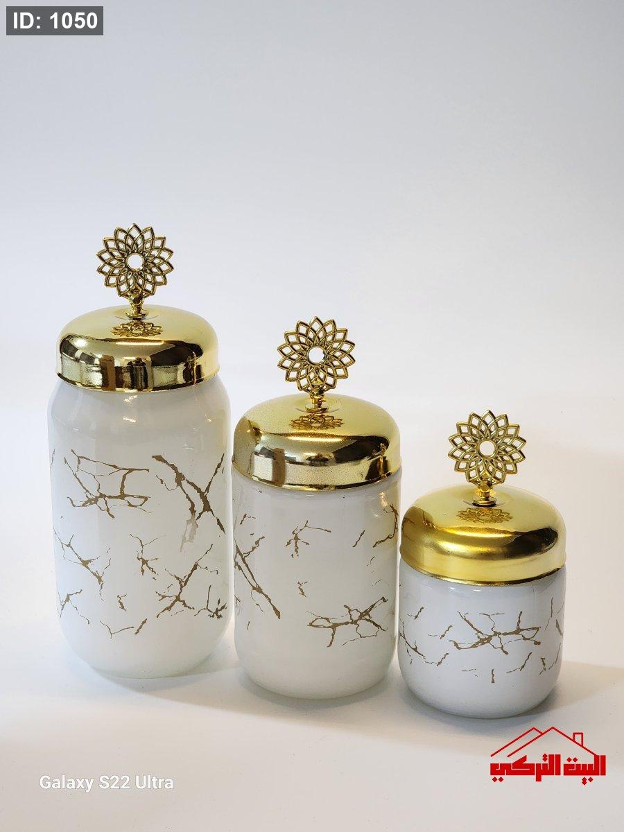 طقم مرطبان زجاج غطاء بلاستيك ذهبي