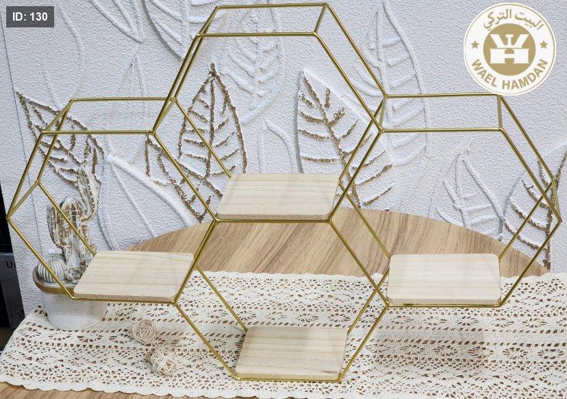 ستاند تعليق ذهبي مع قواعد خشبية