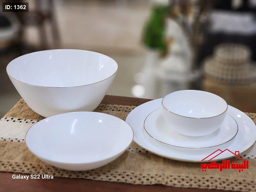 طقم صحون بورسلان ابيض حز ذهبي 25قطعة