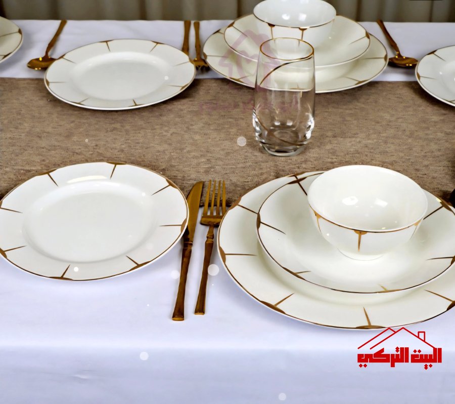 طقم صحون بورسلان ابيض حز بلاتين ذهبي 24قطعة