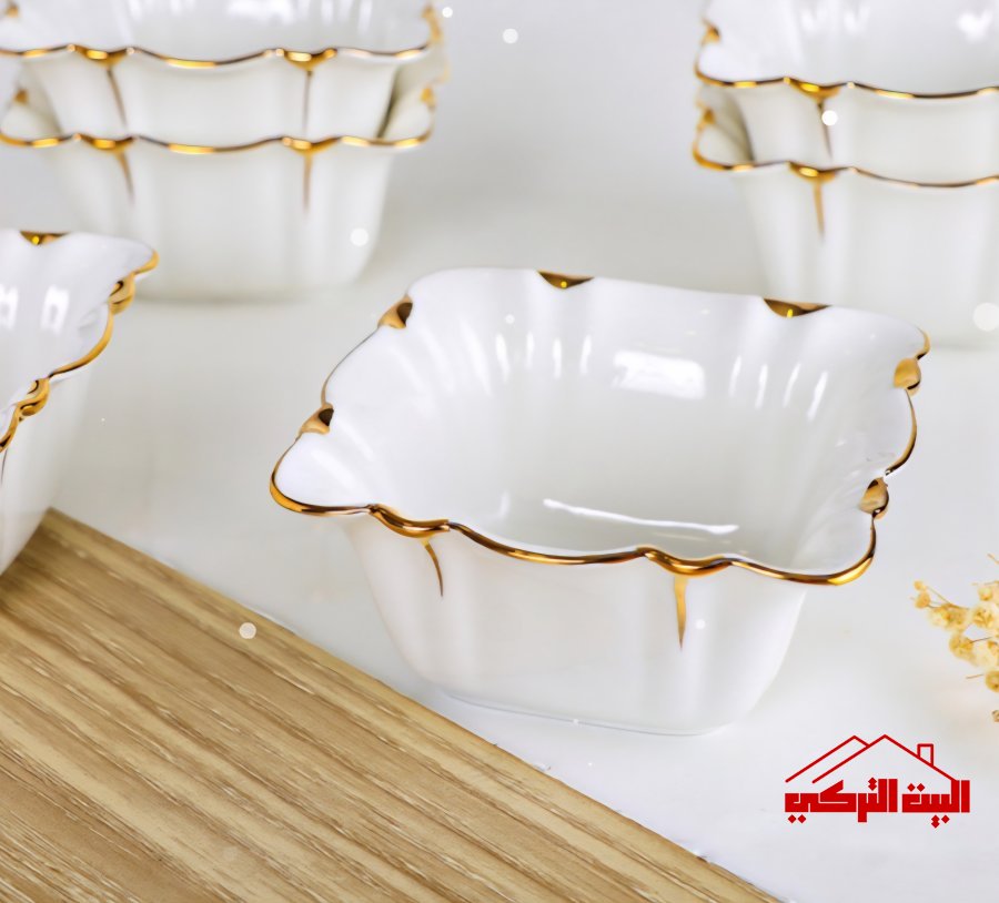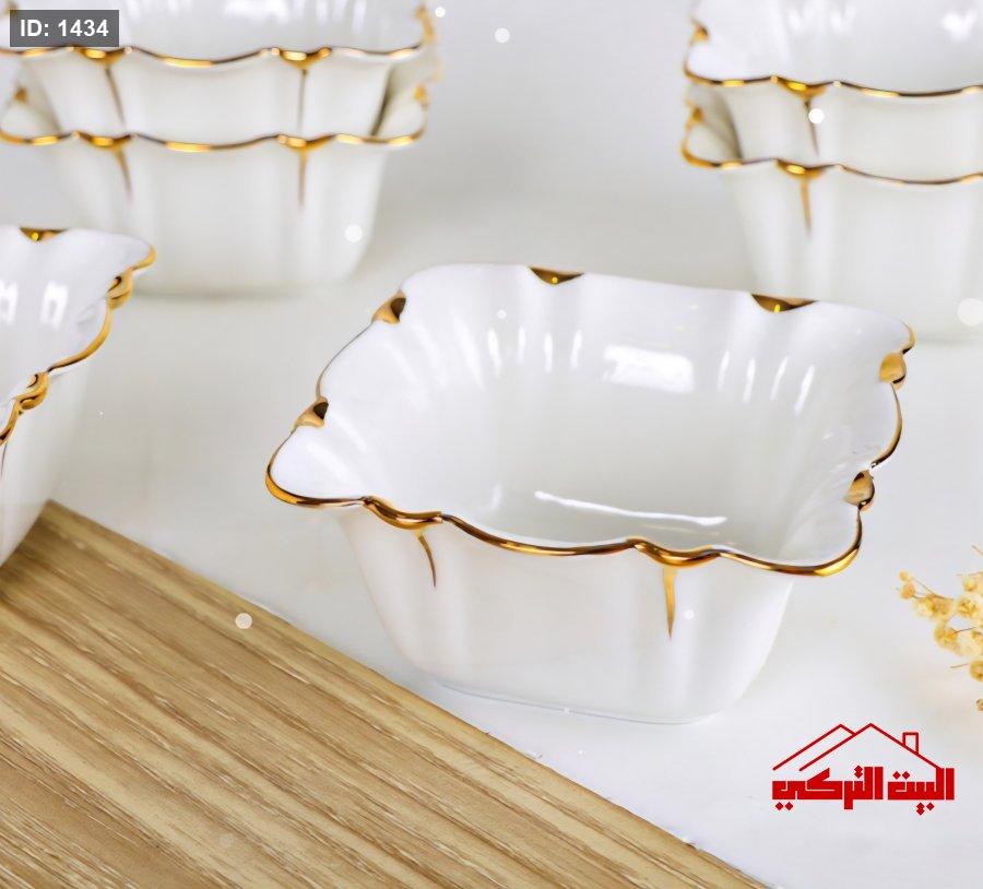 صحون مجور مربع بورسلان ابيض حز بلاتين ذهبي /6