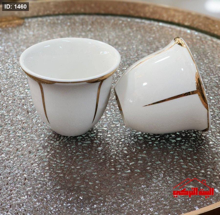 طقم فناجين قهوة سادة بورسلان ابيض حز ذهبي بلاتين/12