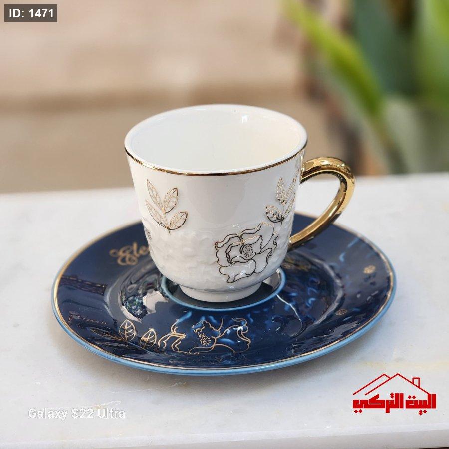 فناجين بورسلان ابيض صحن ملون6+6صحون
