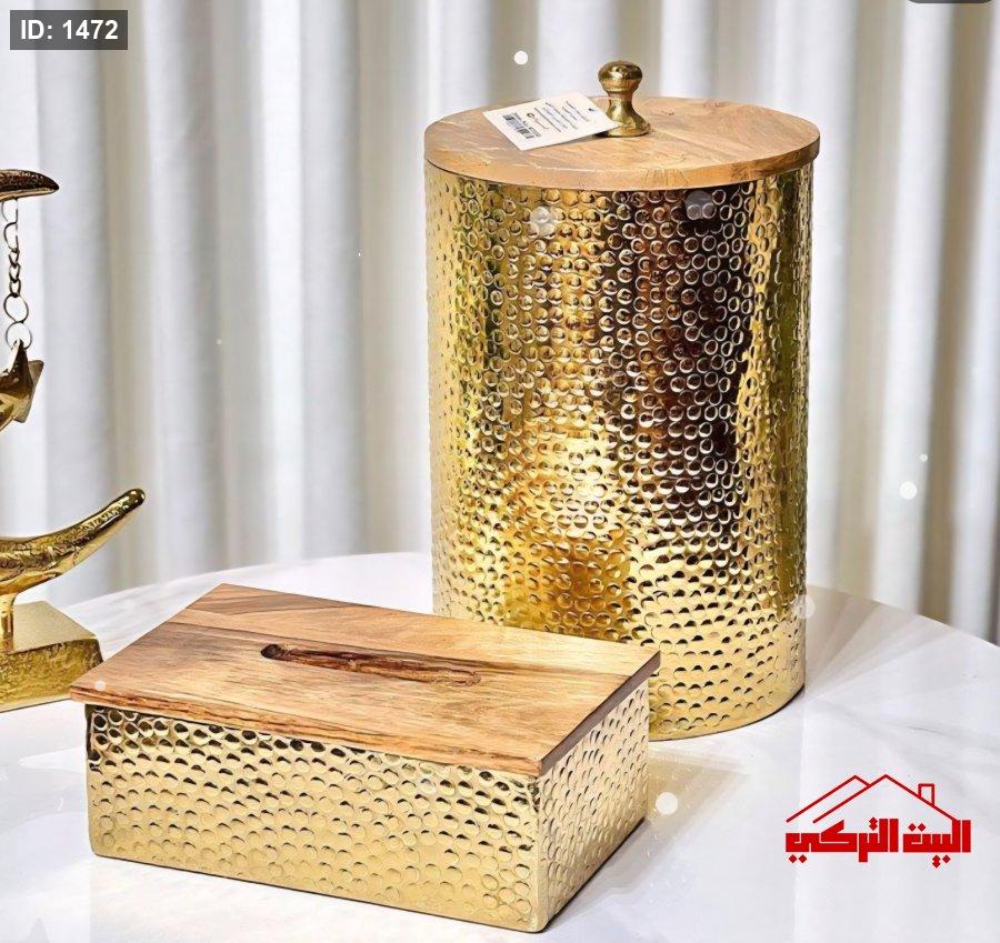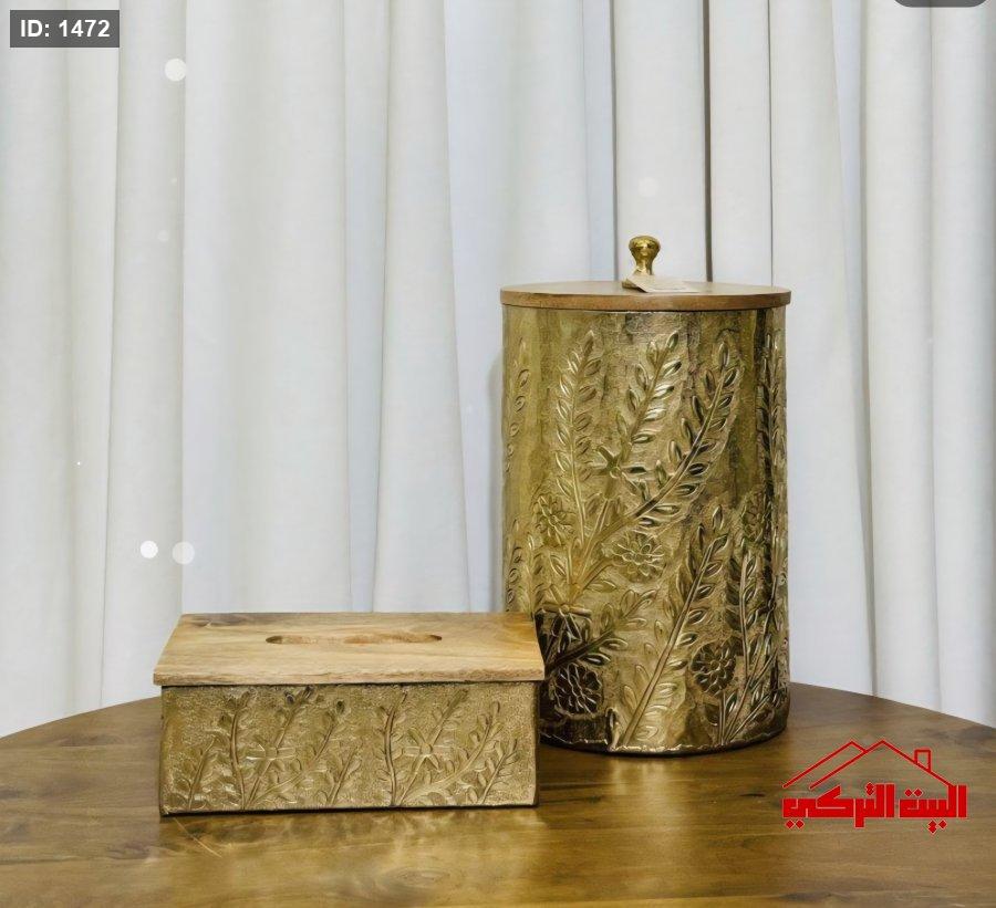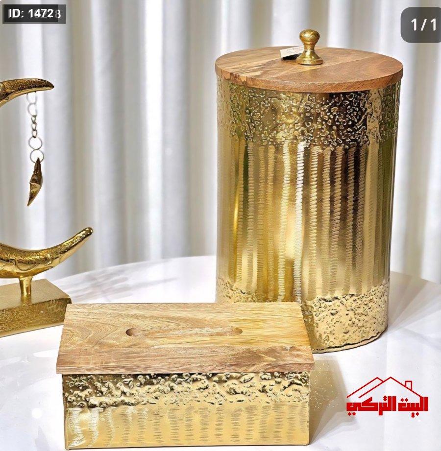 طقم سطل +علبة محارم لون نحاسي مرسم