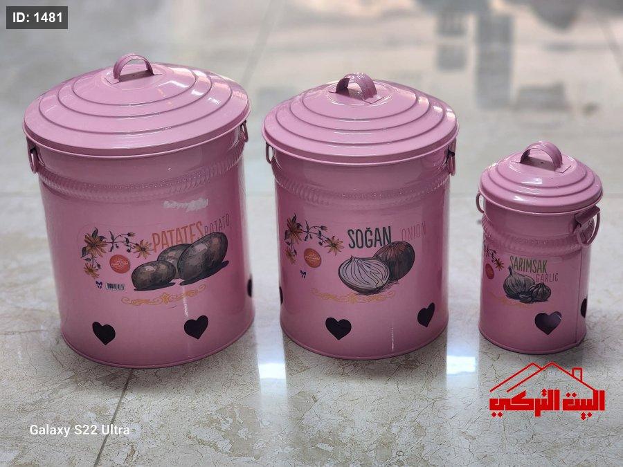 طقم 3سطل مع غطاء حديد لحفظ للخضروات
