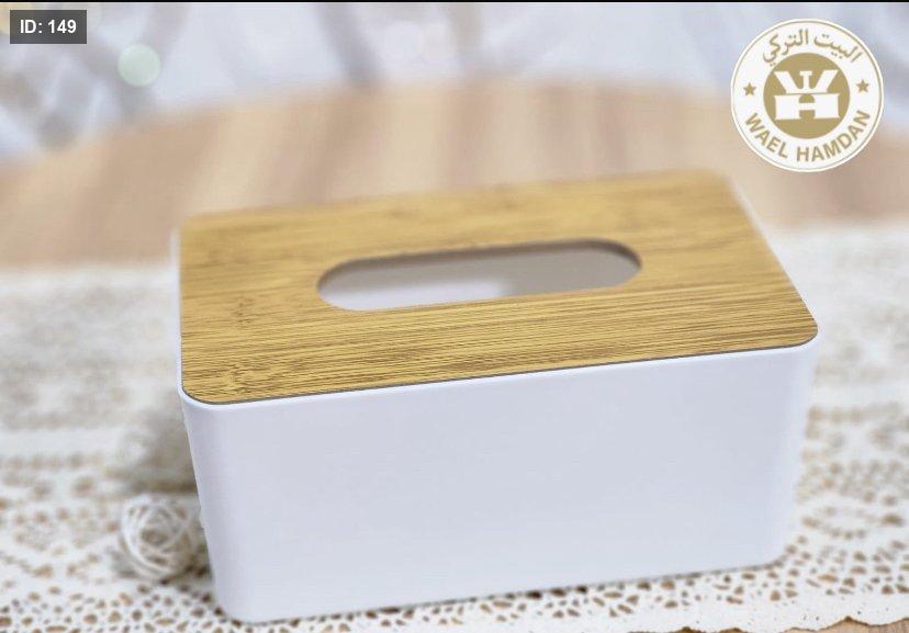 علبة محارم بلاستيك غطاء خشب