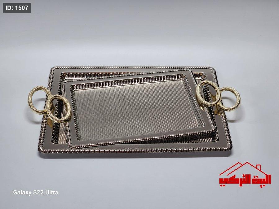 طقم صواني ستيل تركي فضي يد ذهبي /2
