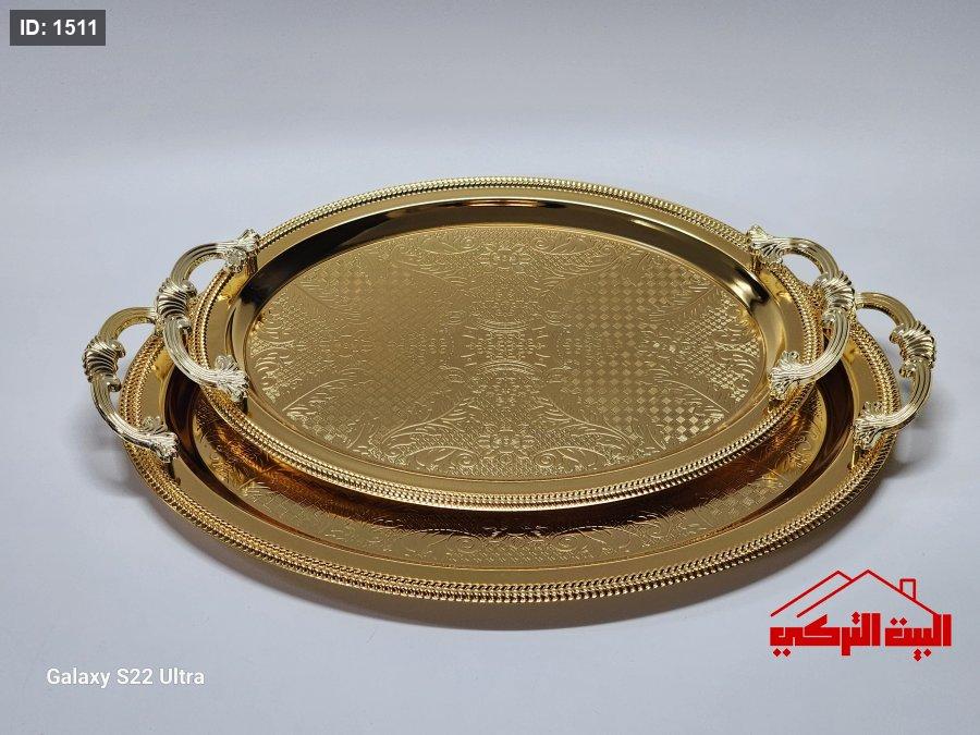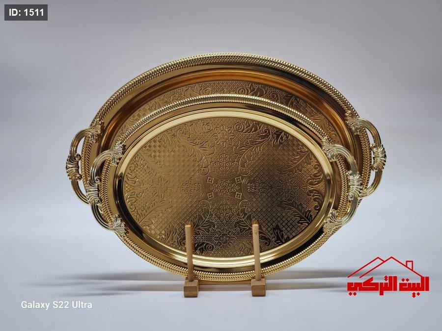 طقم صواني ستيل تركي ذهبي يد ذهبي /2