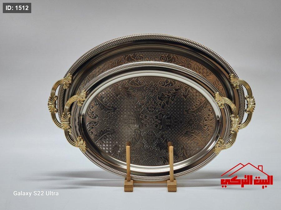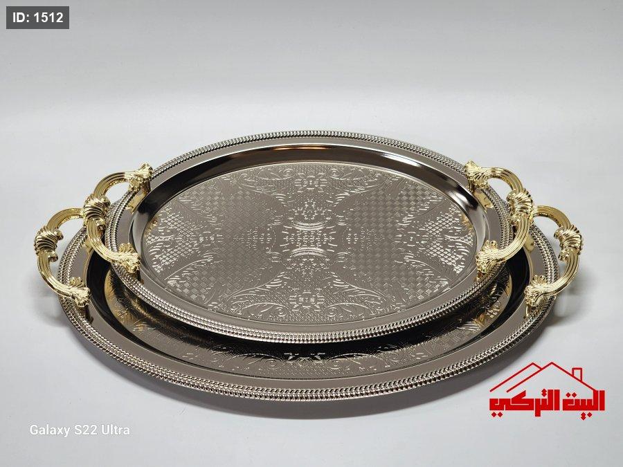 طقم صواني ستيل تركي فضي يد ذهبي /2