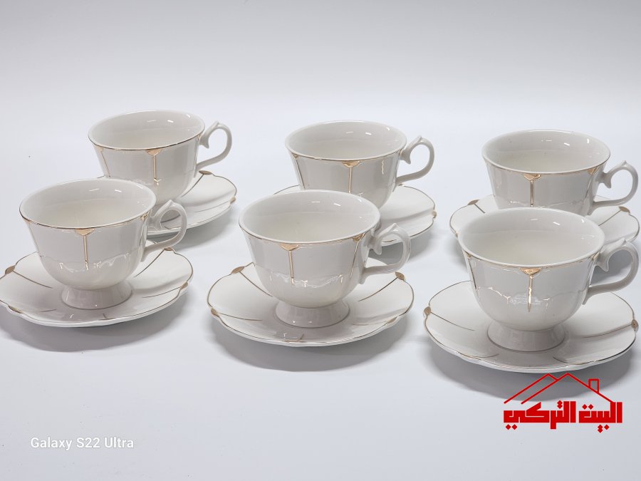 فناجين شاي بورسلان ابيض حز ذهبي بلاتين/6