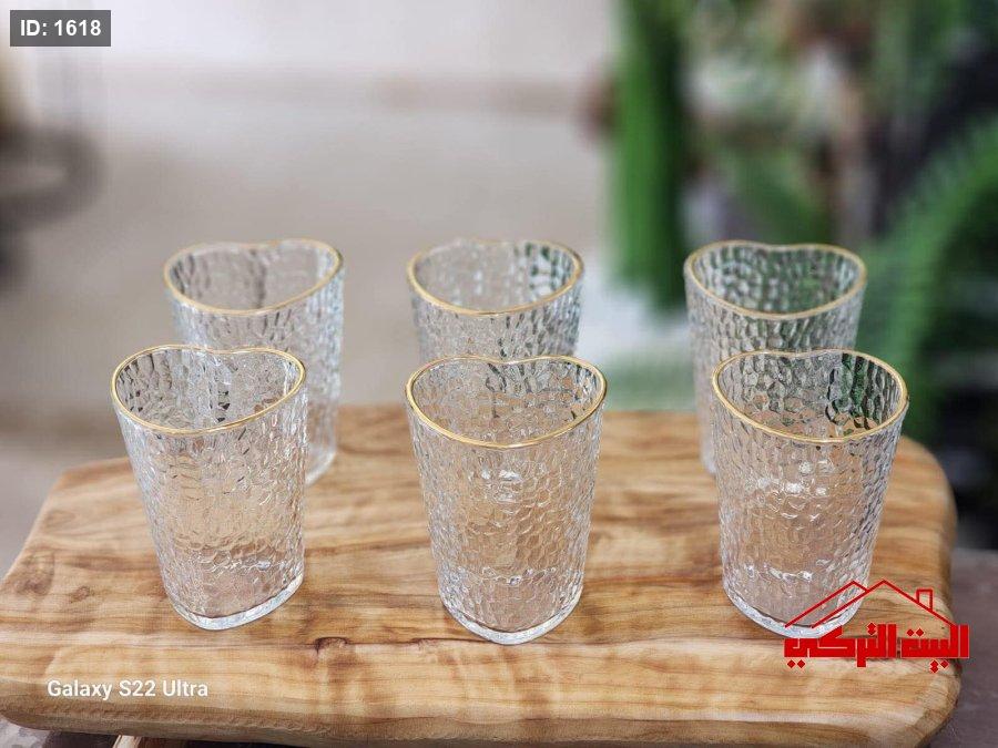 كاسات عصير شكل قلب /6حز ذهبي