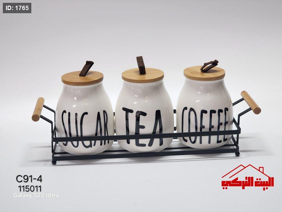 طقم 3سكريات بورسلان ابيض ستاند معدن اسود
