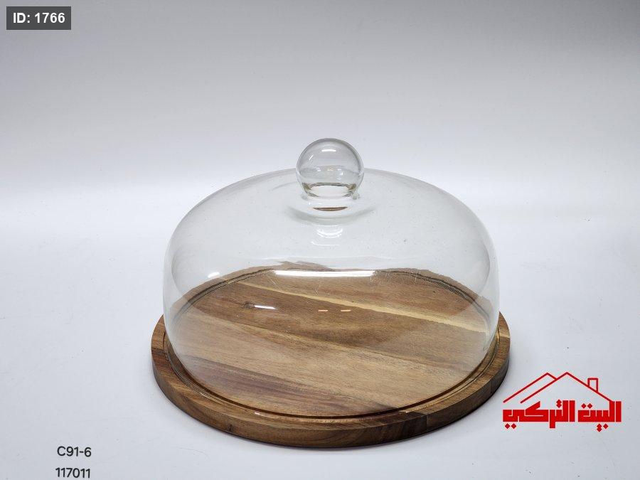 جاط كيك قاعدة خشب غطاء زجاج