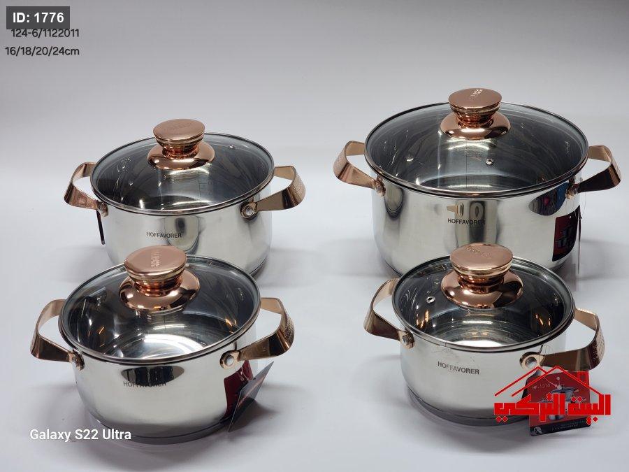 طقم طناجر ستيل برونزي غطاء زجاج 16/18/20/24سم