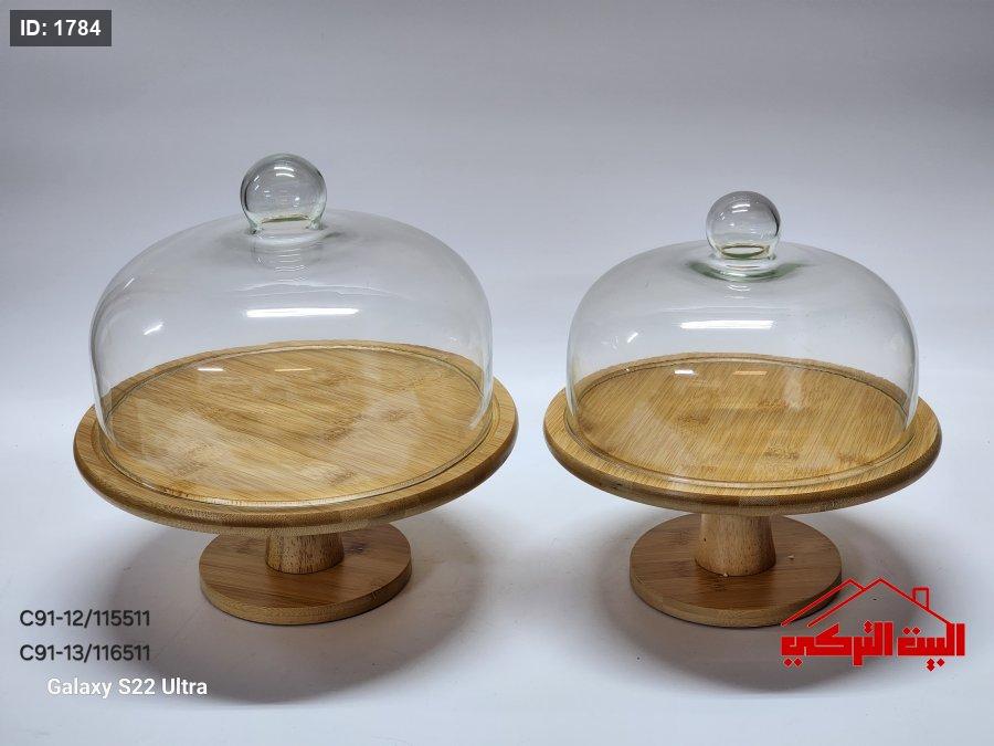جاط كيك خشب مع قاعدة غطاء زجاج