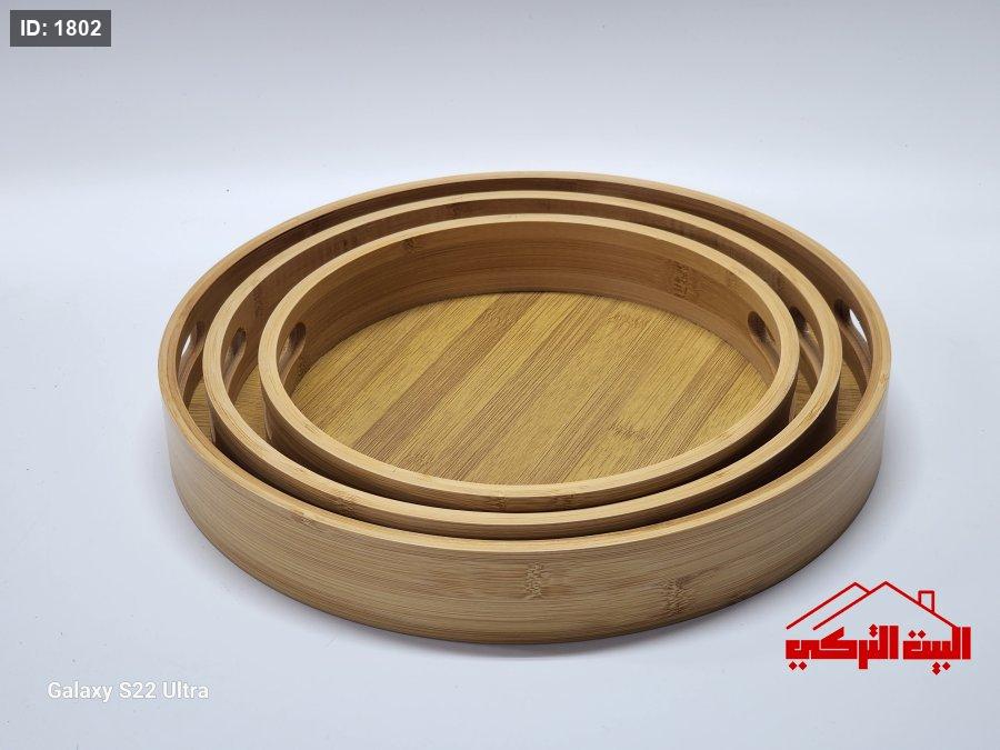 طقم 3 صواني خشب بامبو دائري