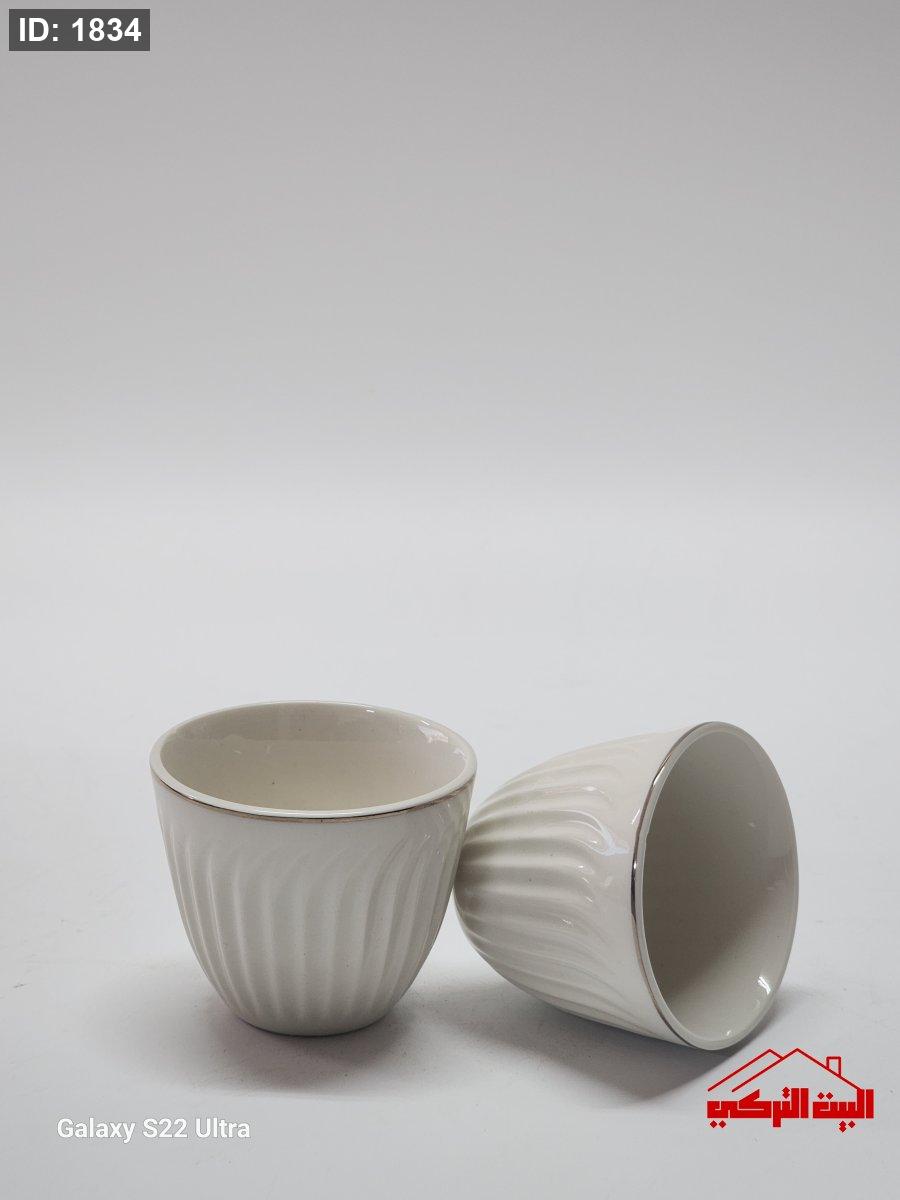 فناجين قهوة بورسلان ابيض حز ذهبي