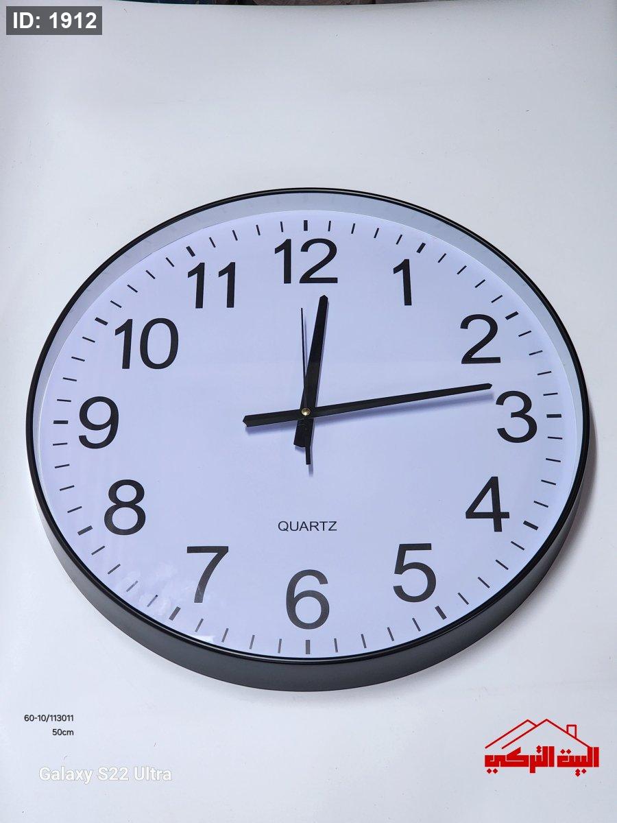 ساعة حائط بلاستيك مقوى لون ابيض اسود قطر 50سم