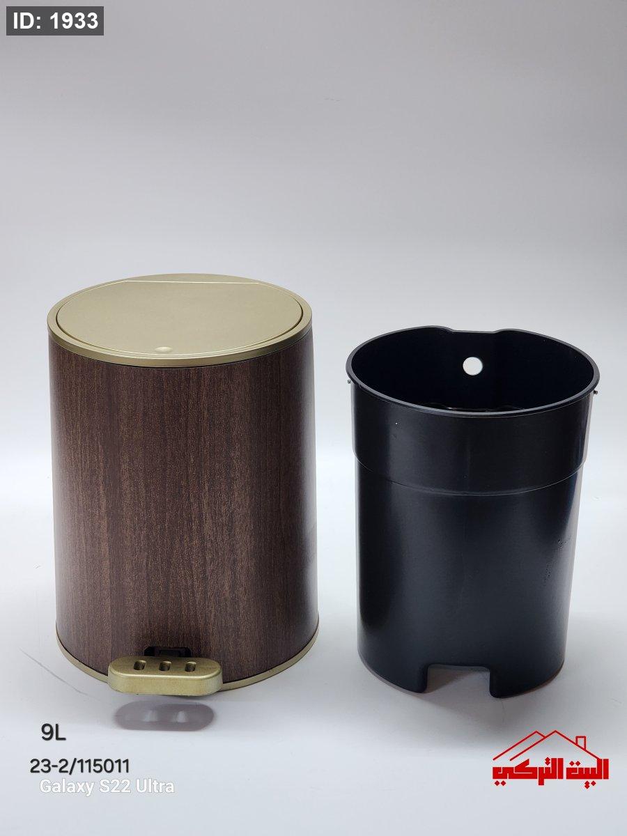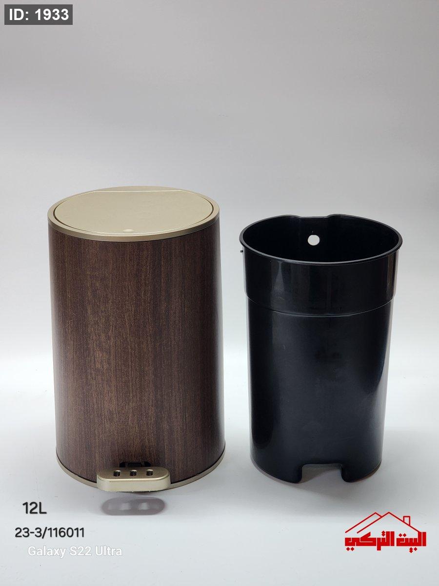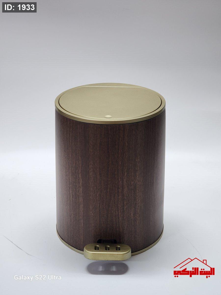 سطل نفايات دعسة +كبسة بلاستيك مقوى لون خشبي مع سطل داخلي