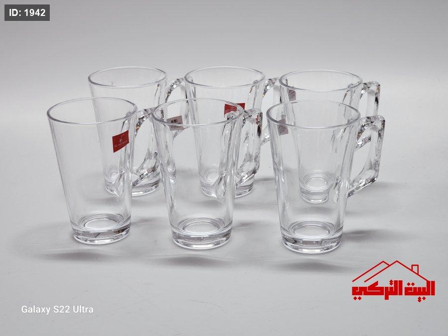 كاسات شاي شفاف /6 مع يد