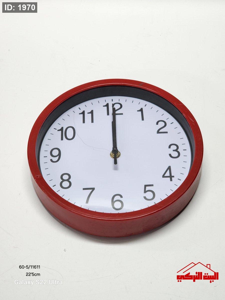 ساعة حائط بلاستيك مقوى اطار احمر قطر 5'22سم