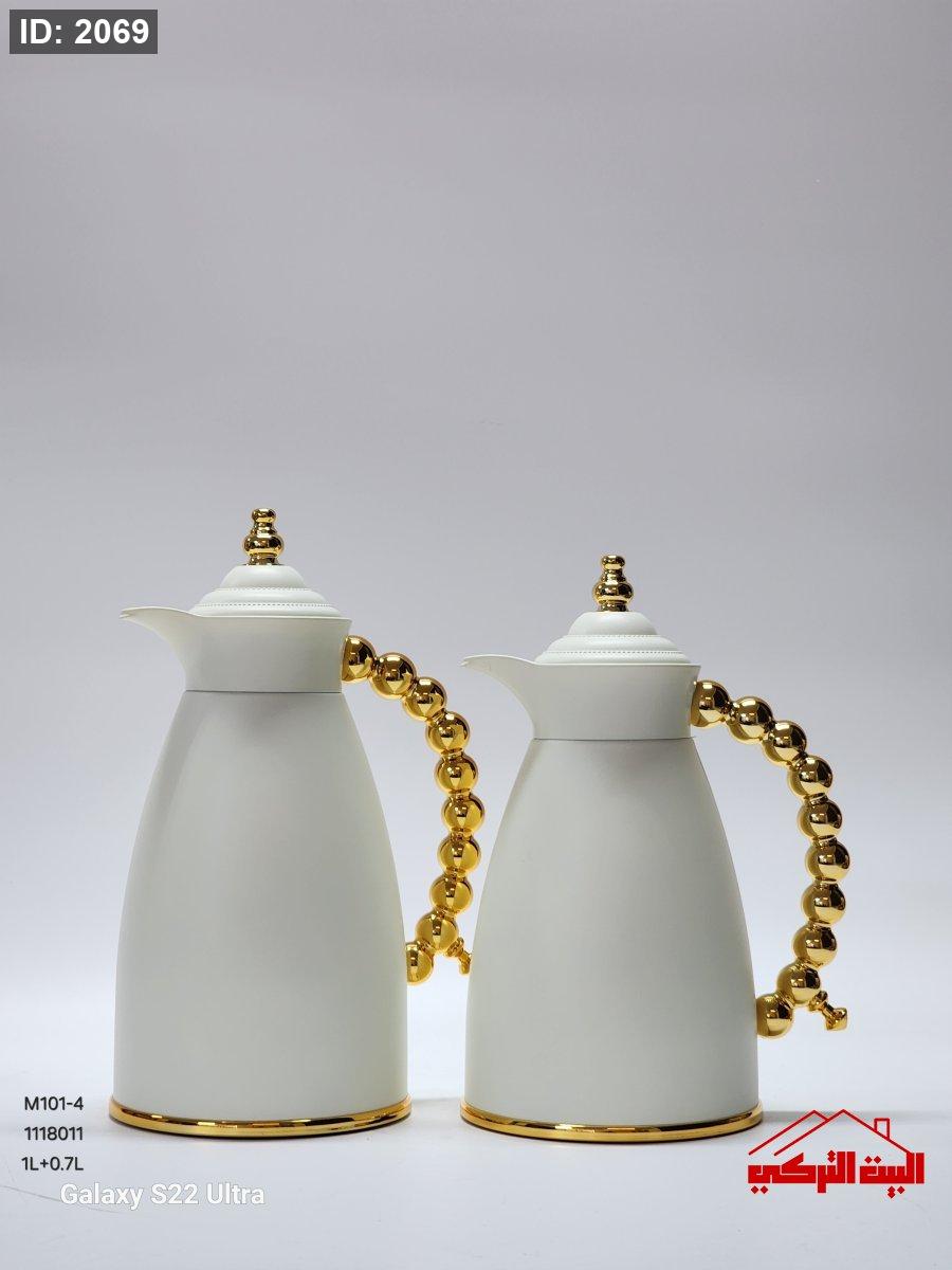 طقم براد قهوة بلاستيك مقوى يد ببلز ذهبي 1لتر +0.70لتر