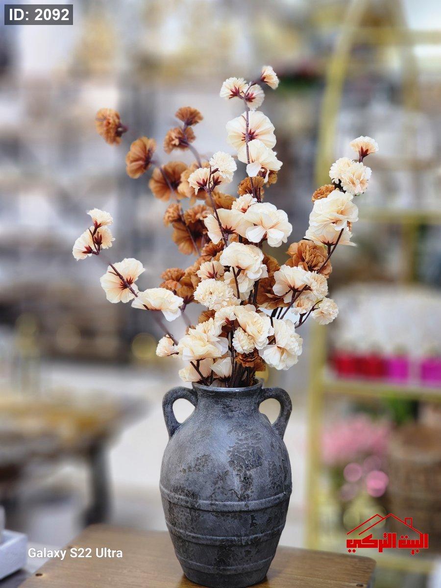 مزهرية حجر مع ورد