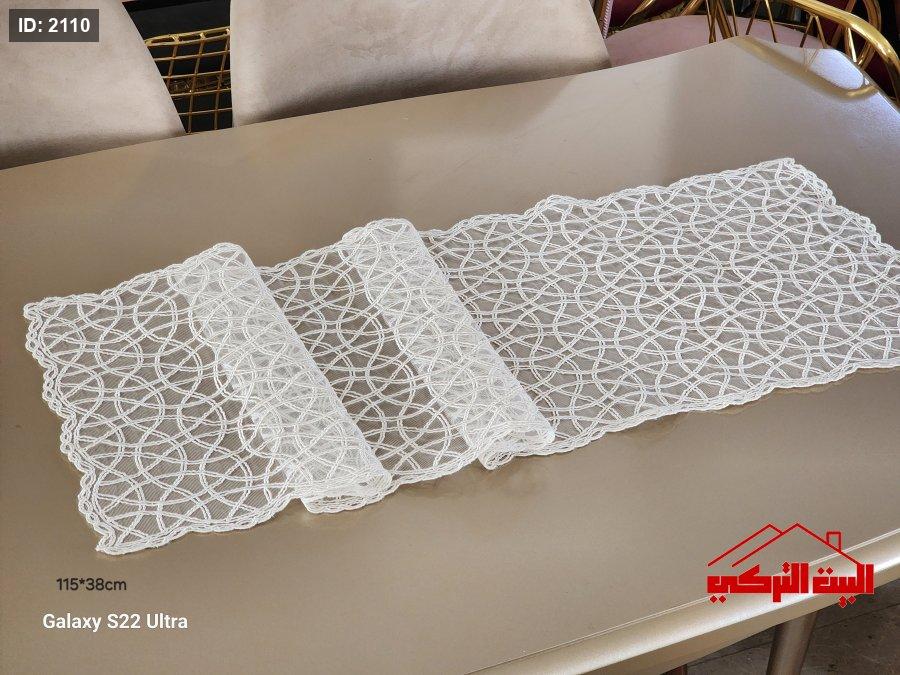 رنر طاولة قماش ابيض مخرم 115*38سم