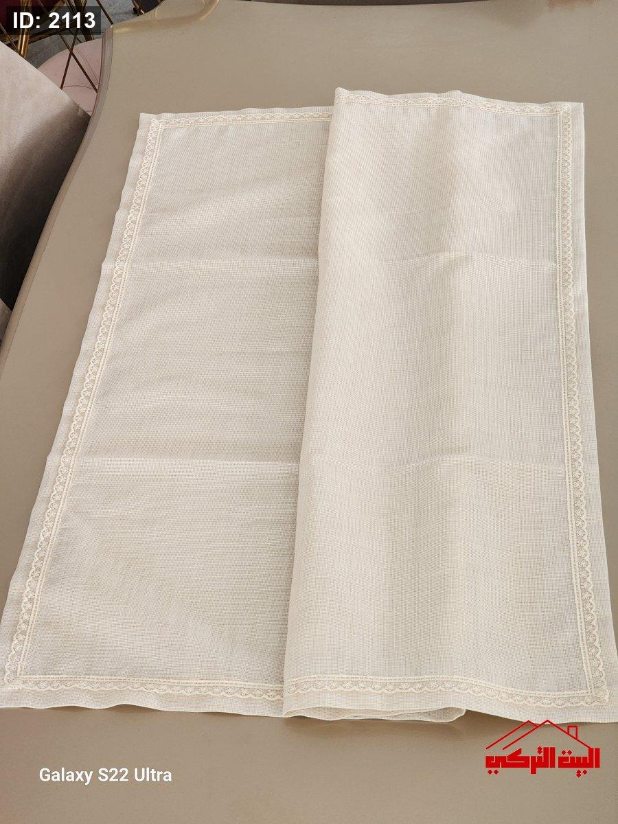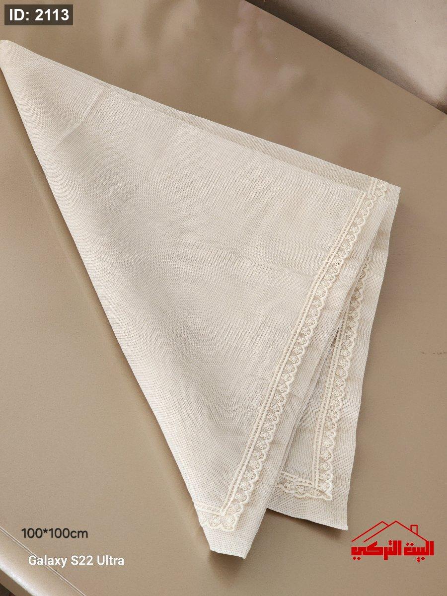 شرشف طاولة مربع قماش لون بيج اطار دانتيل 100*100سم