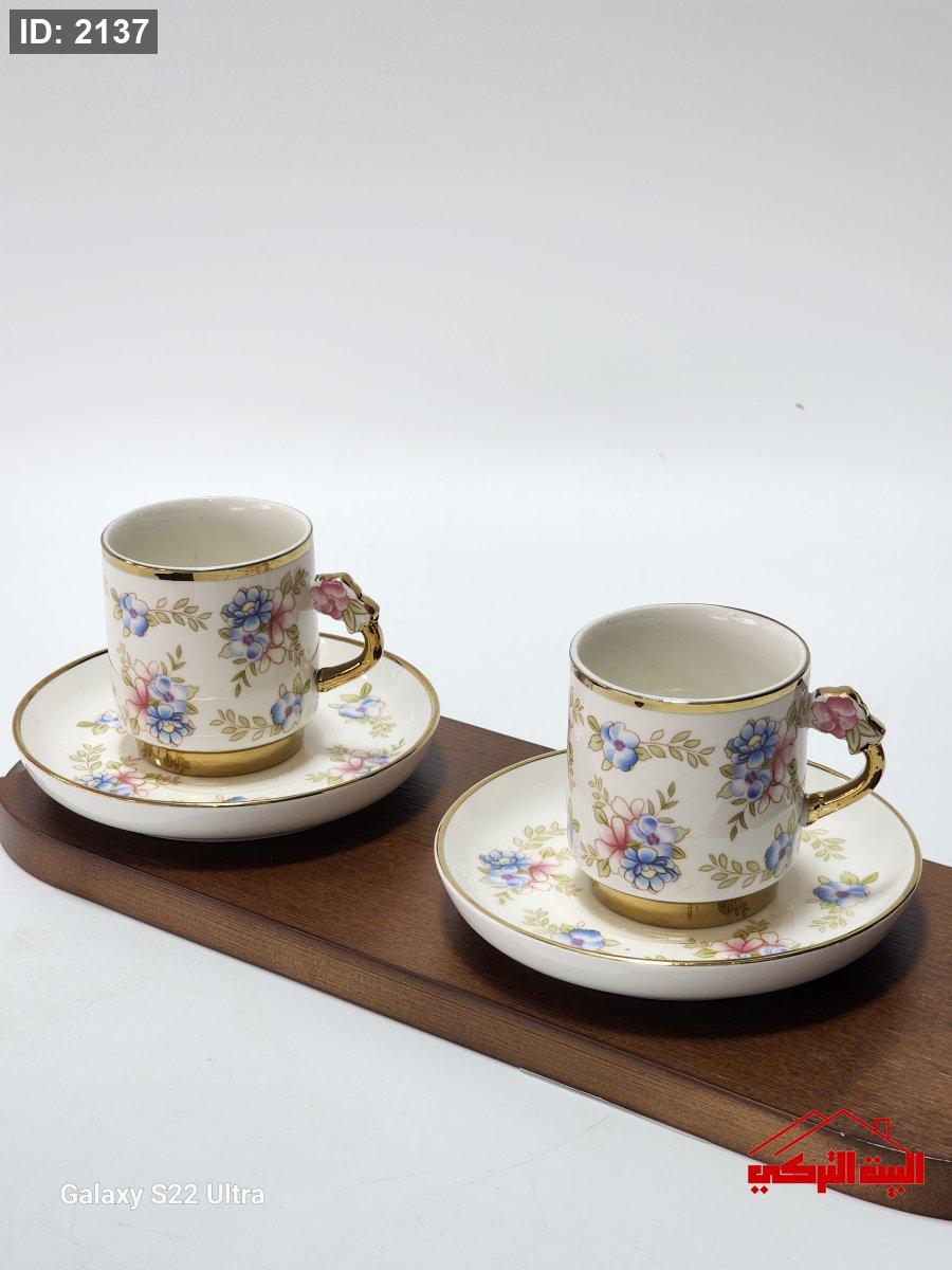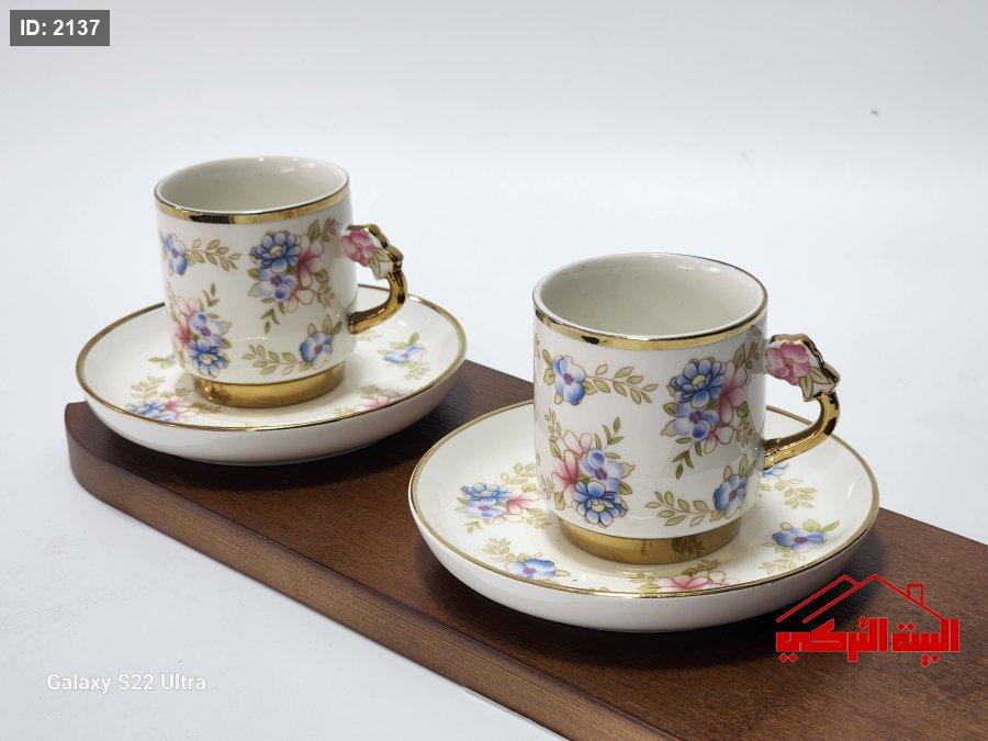 طقم فناجين 12+12صحن بورسلان ابيض مورد ازرق