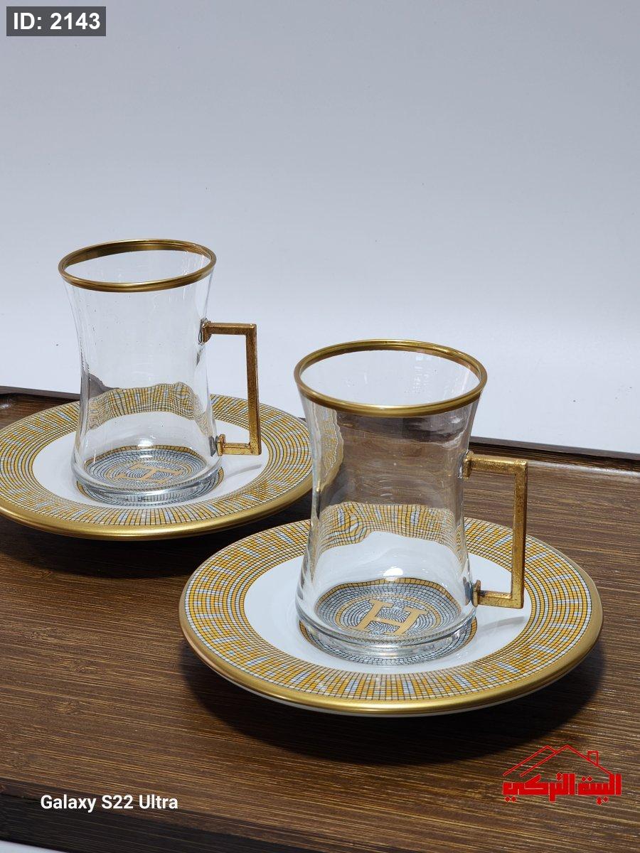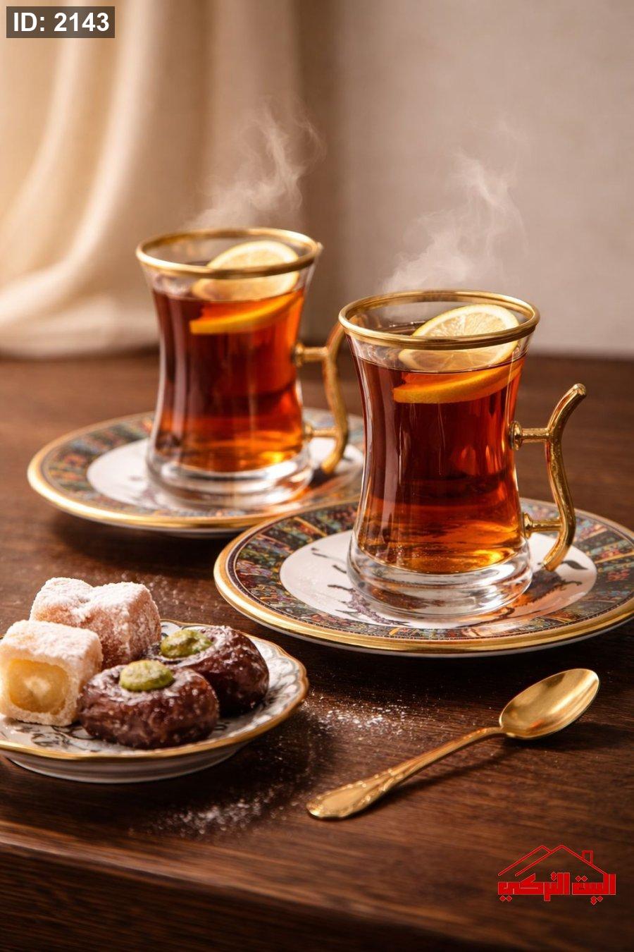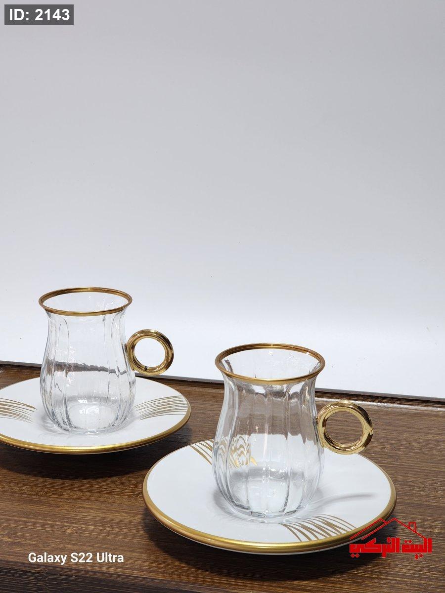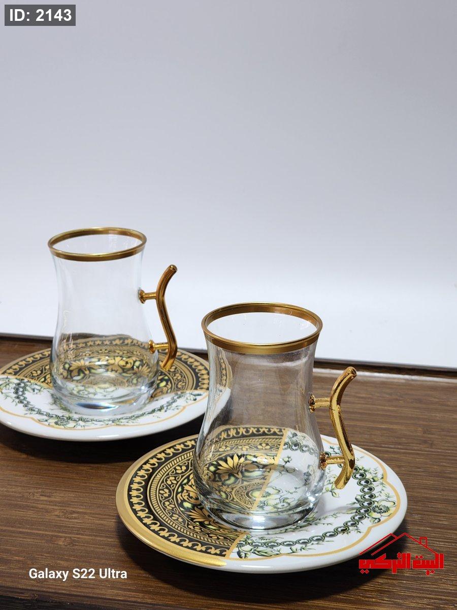 طقم كاسات قرفة /شاي 6+6 صحون بورسلان ملون