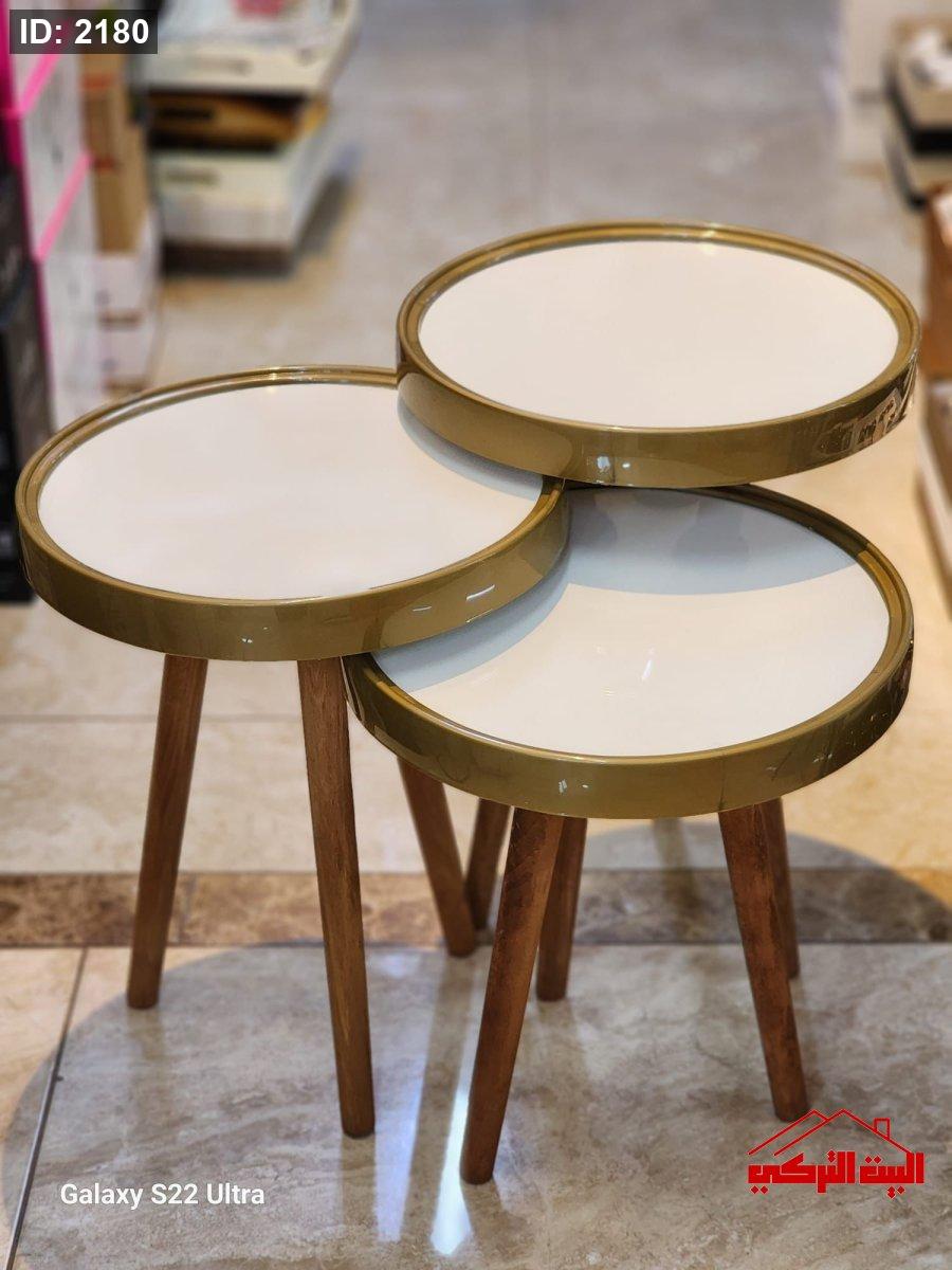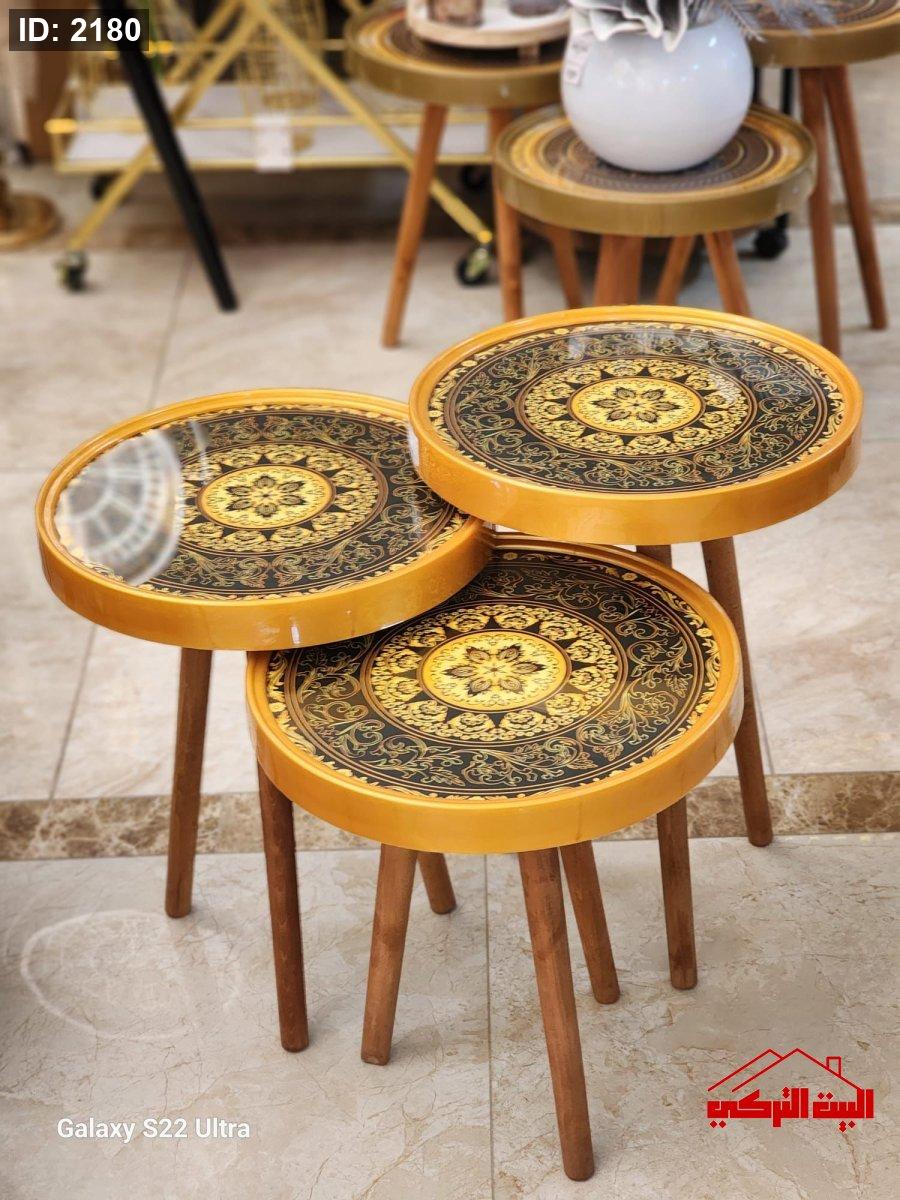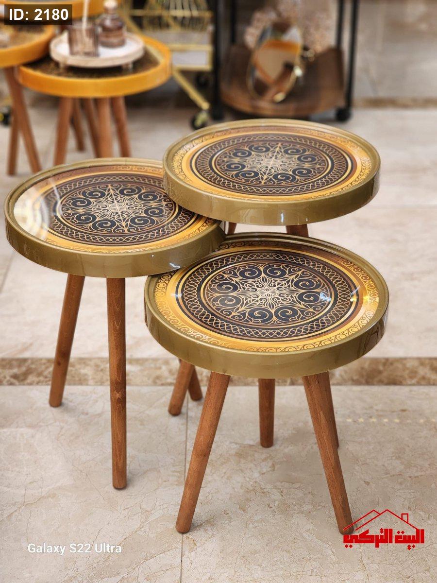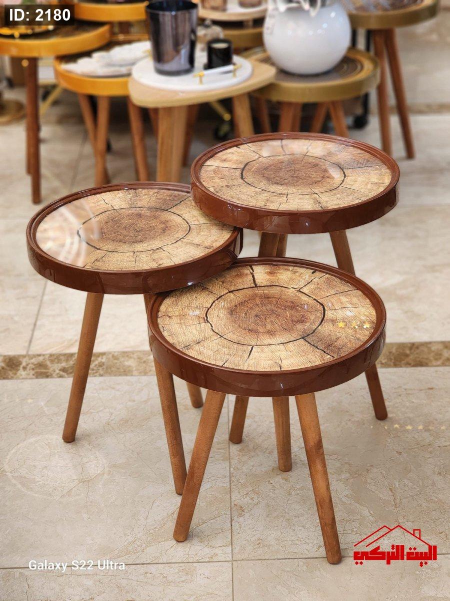 طقم 3 سكملات خشب تركي وجه زجاج