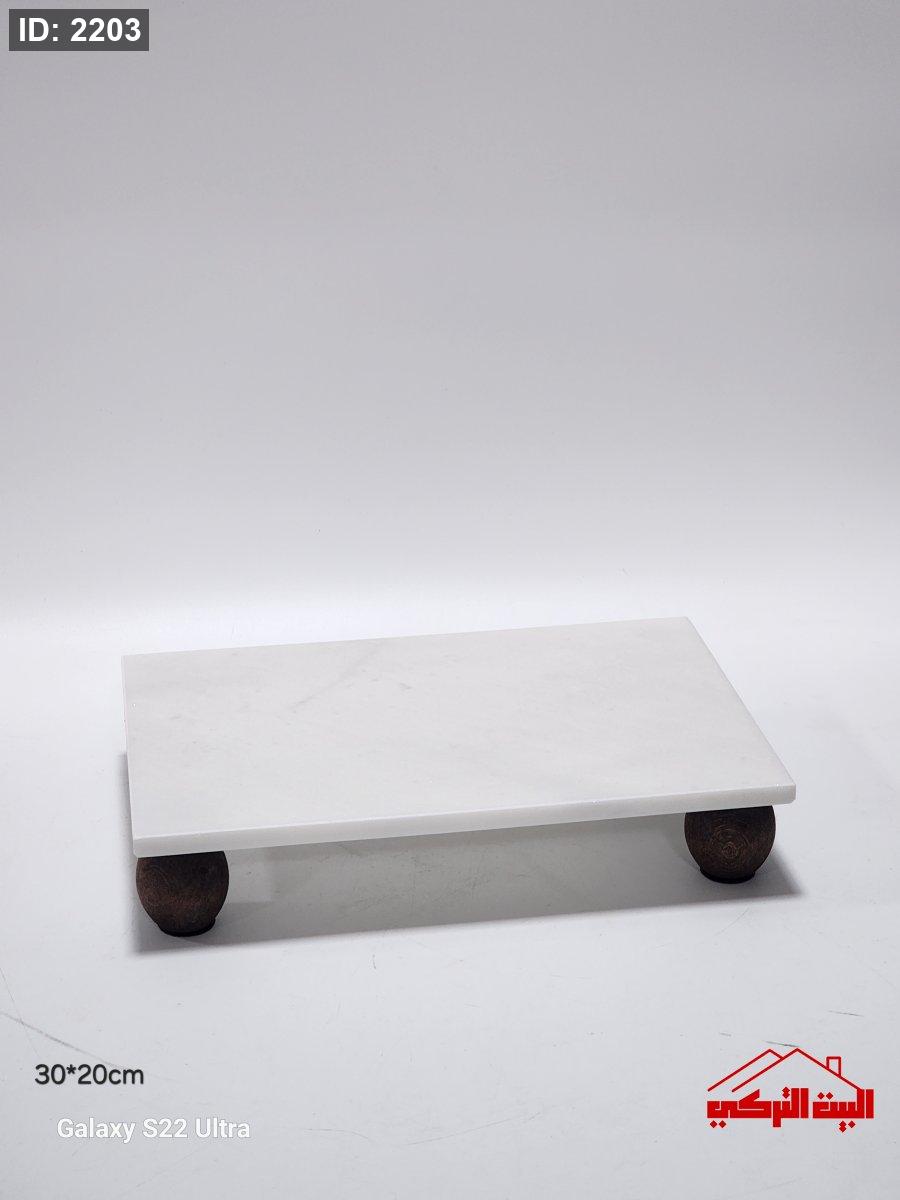 صينية ديكور رخام ابيض ارجل خشب 30*20سم