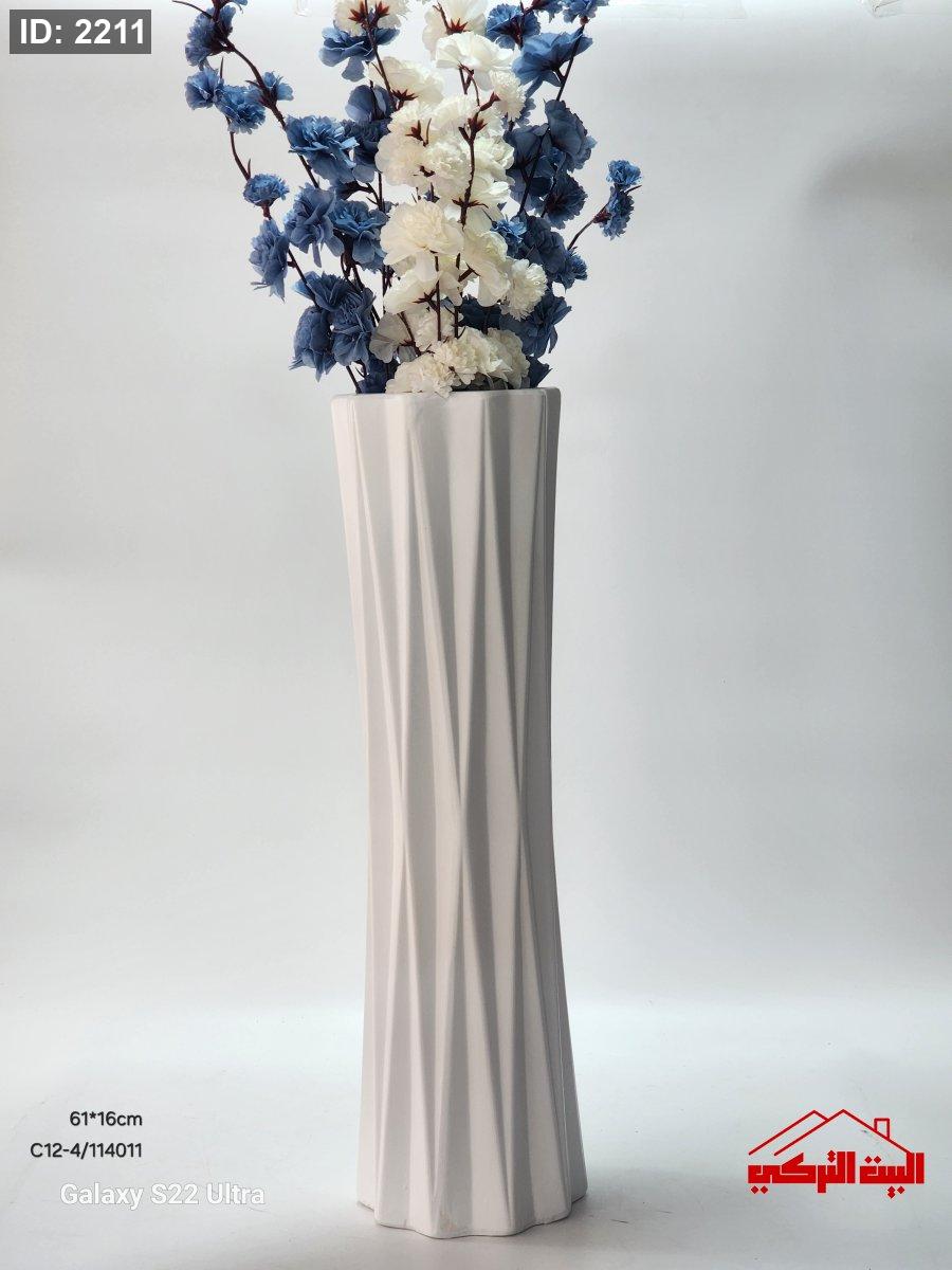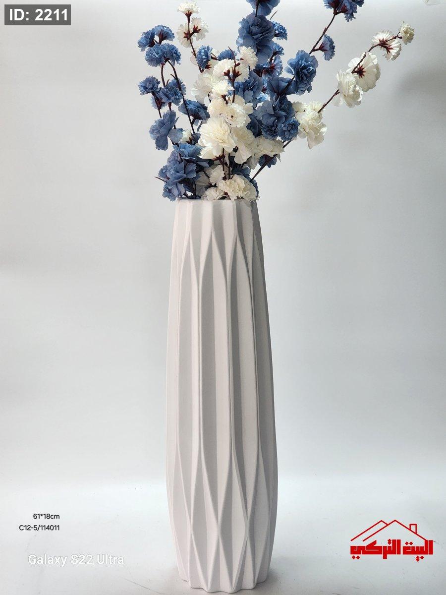 مزهرية جبصين ابيض اشكال طويل بدون ورد 61*16سم