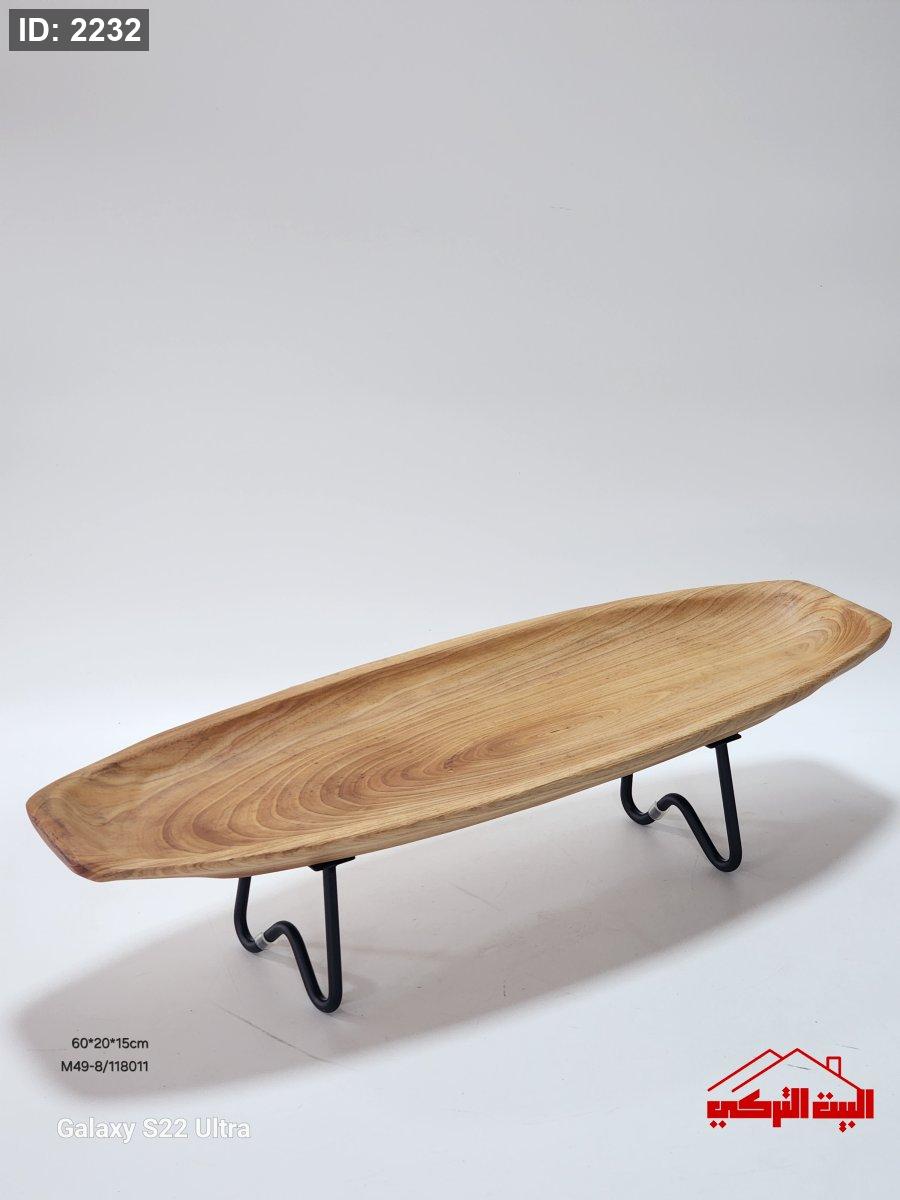جاط تقديم خشب بيضاوي ارجل معدن اسود 60*20*15سم
