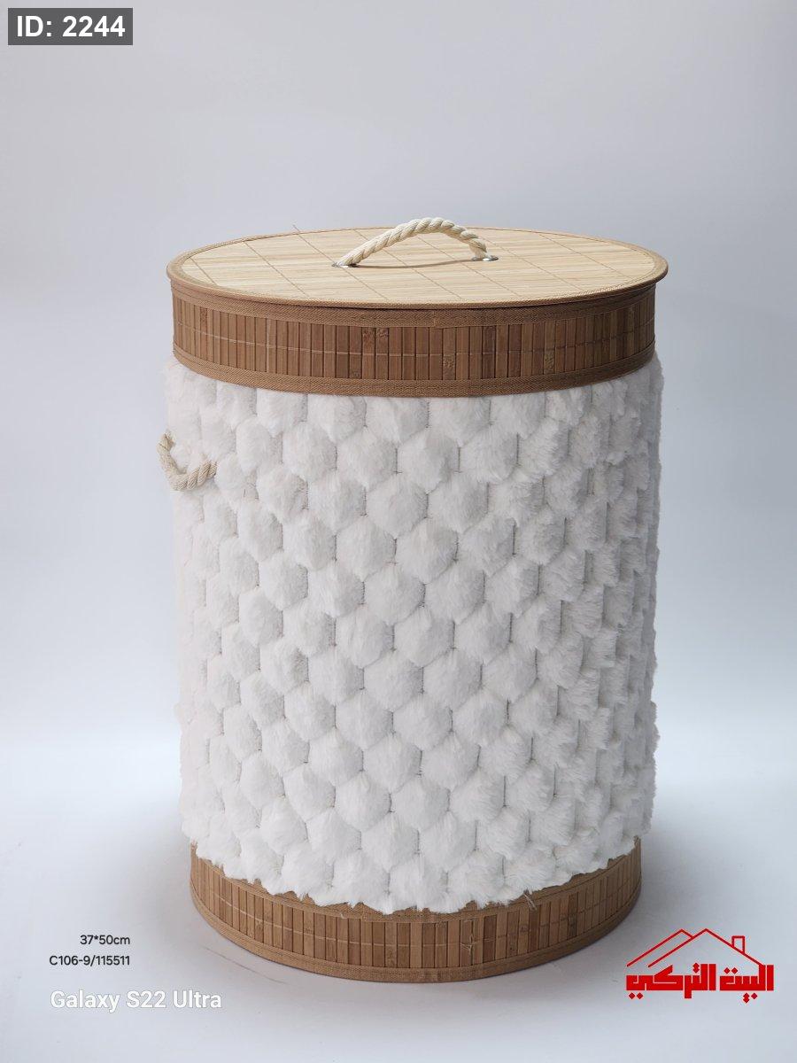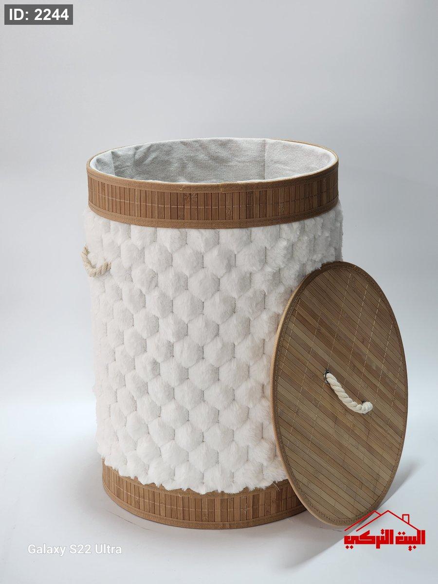 سلة غسيل خشب بامبو فرو ابيض 37*50سم