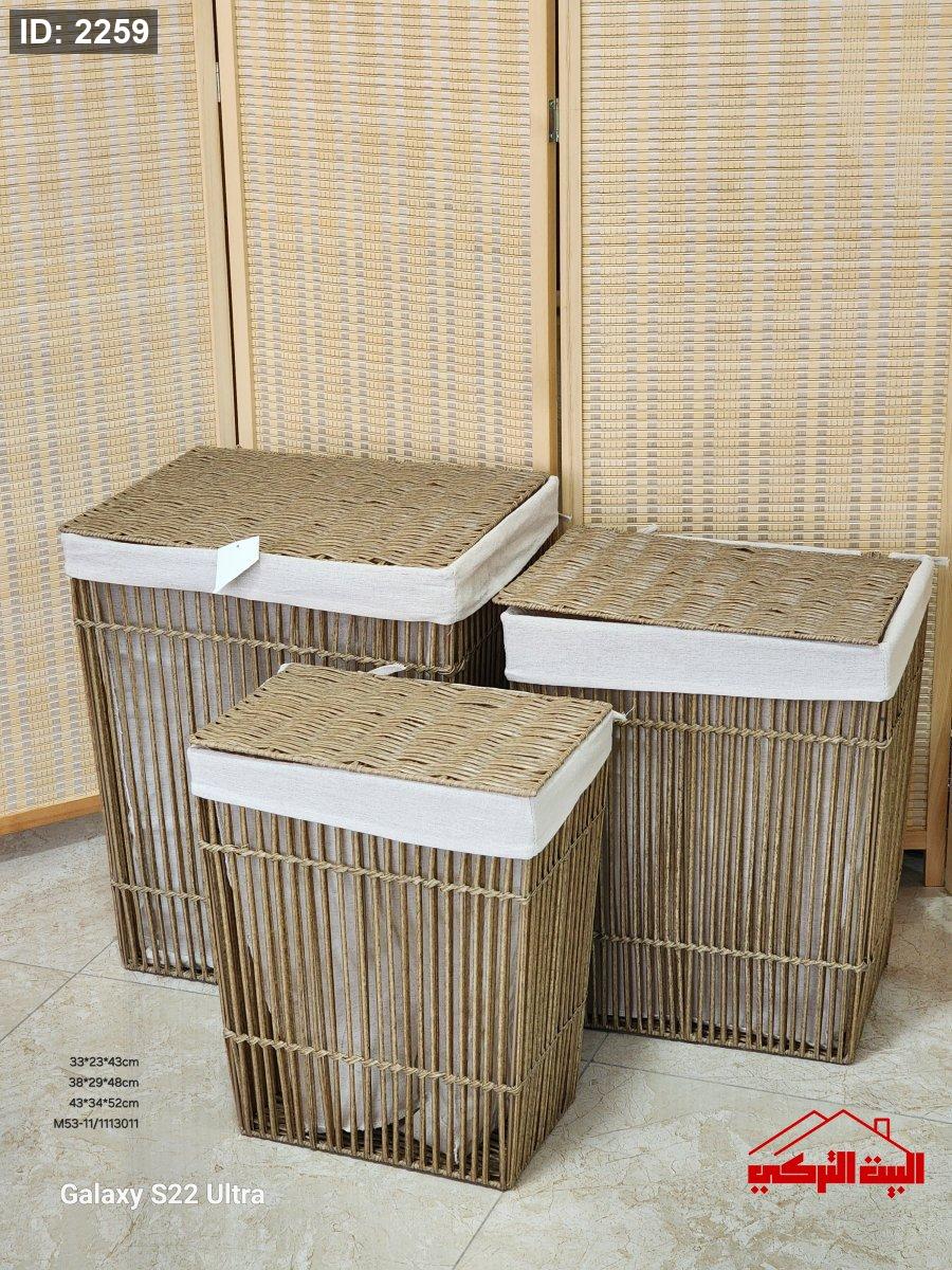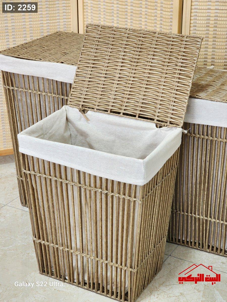 طقم سلة غسيل جلد مشبك مع غطاء