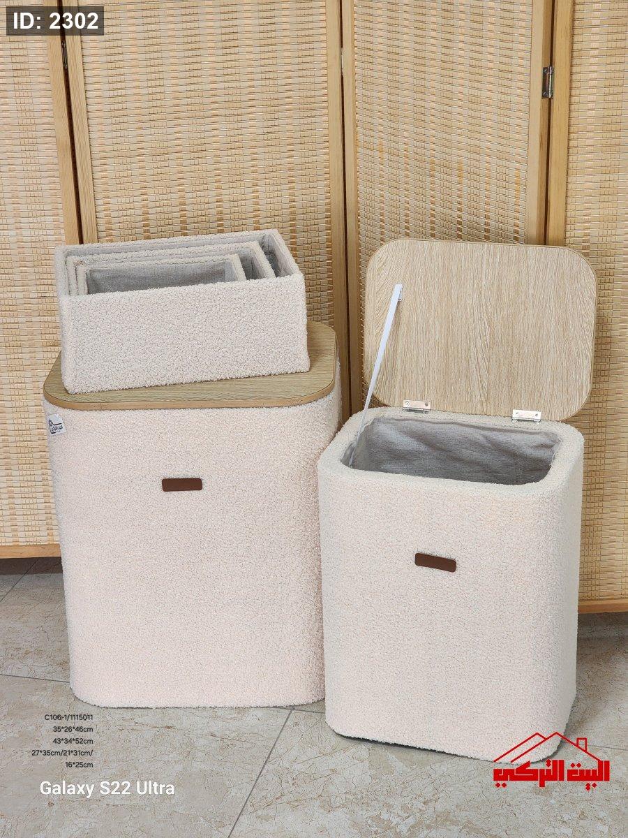 طقم سلة غسيل خشب فرو غطاء خشب بامبو 5قطع