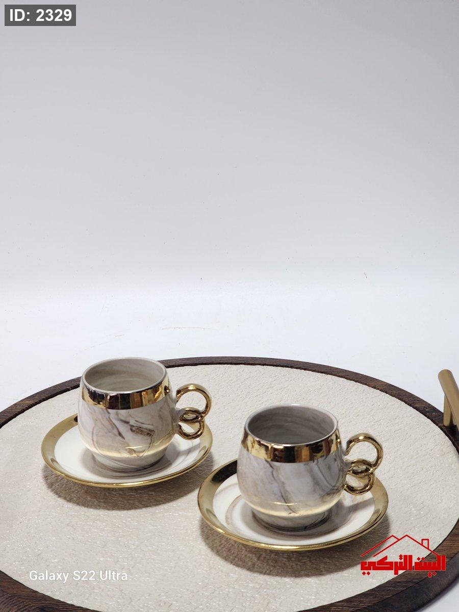 طقم فناجين ابيض مموج بيج 12+12صحن