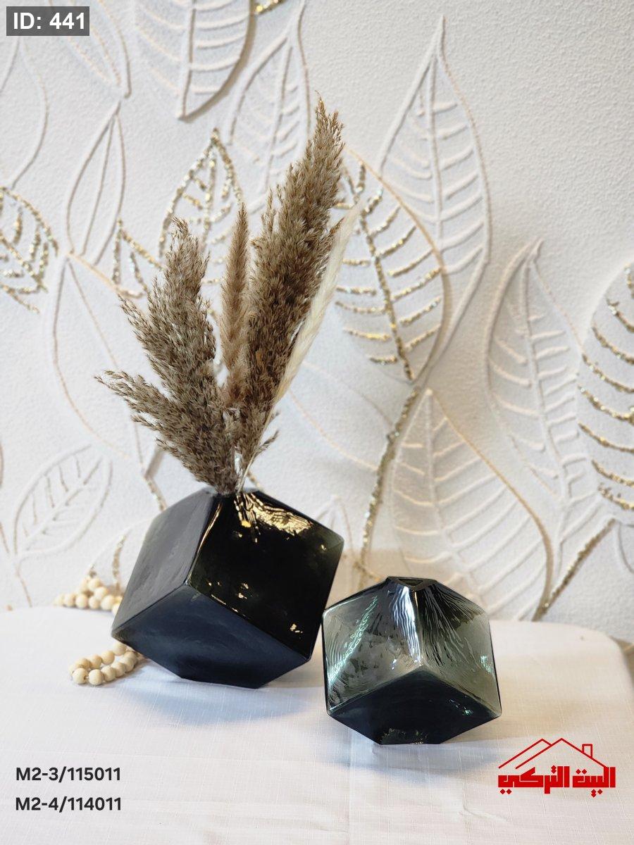 طقم مزهريات/ 2 زجاج دملاج اسود مربع