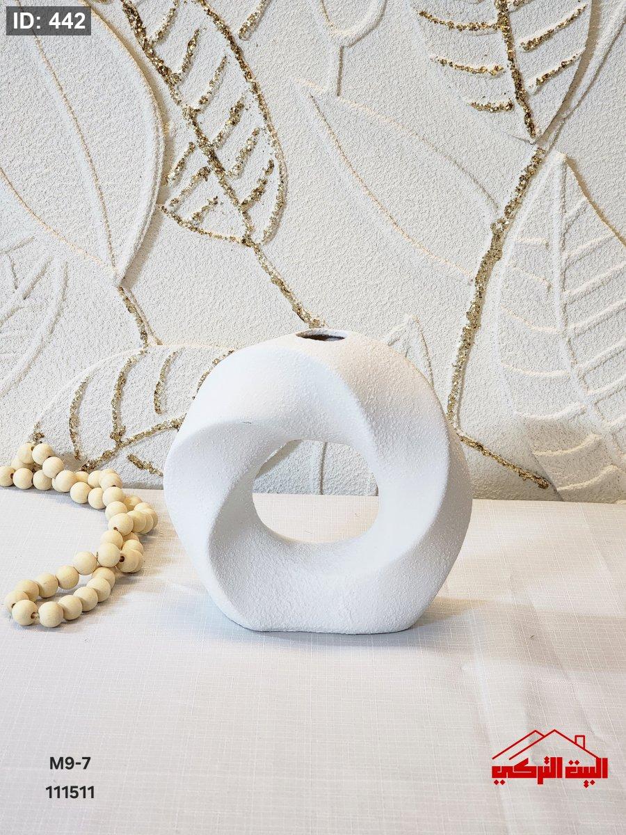 مزهرية جبصين ابيض شكل دائري متعرج