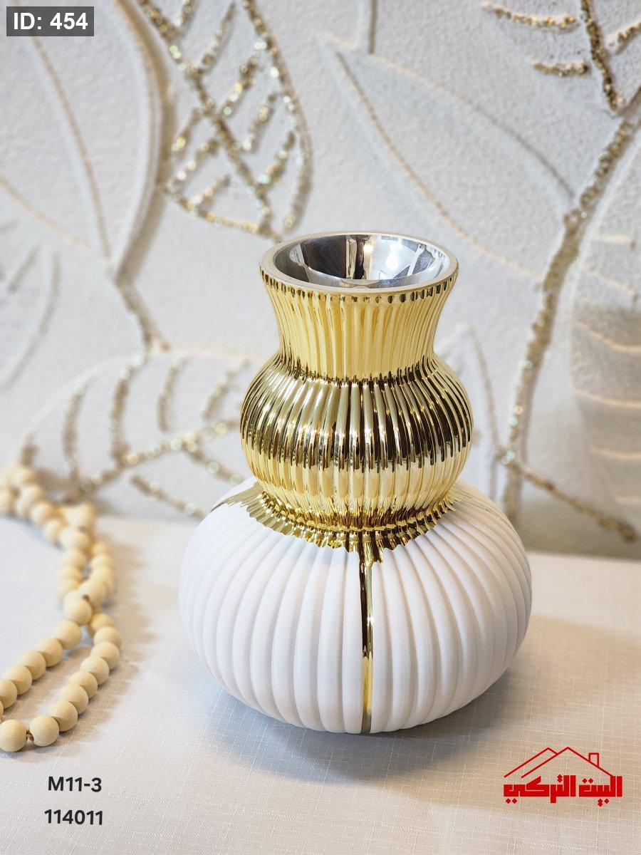 مزهرية زجاج ابيض محزز ذهبي طويلة
