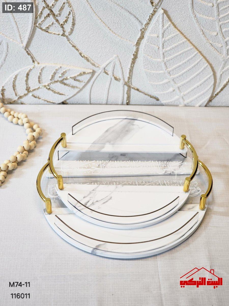طقم صواني خشب دائري وسط أكريلك مكتب
