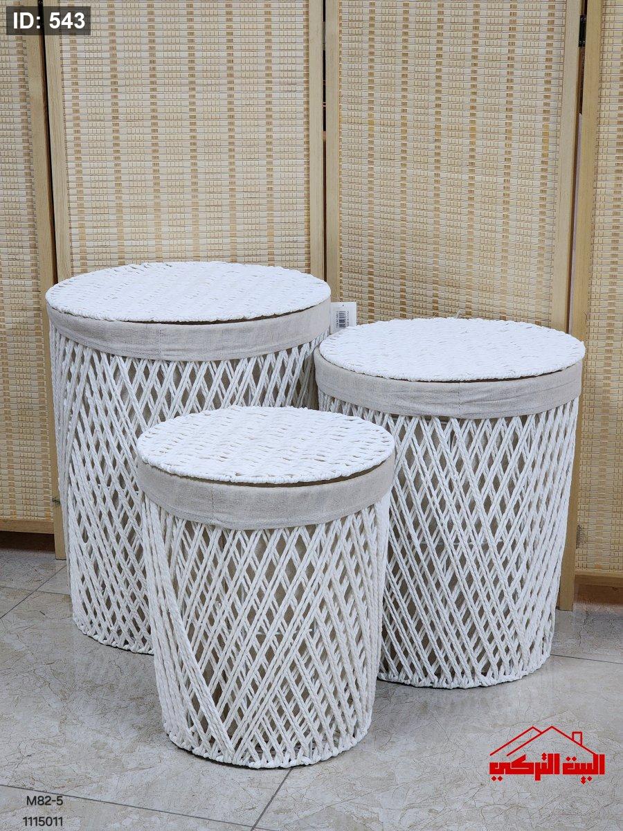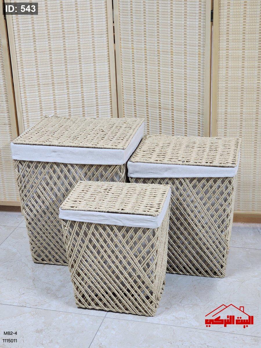طقم 3 سلة قش مشبك مع غطاء