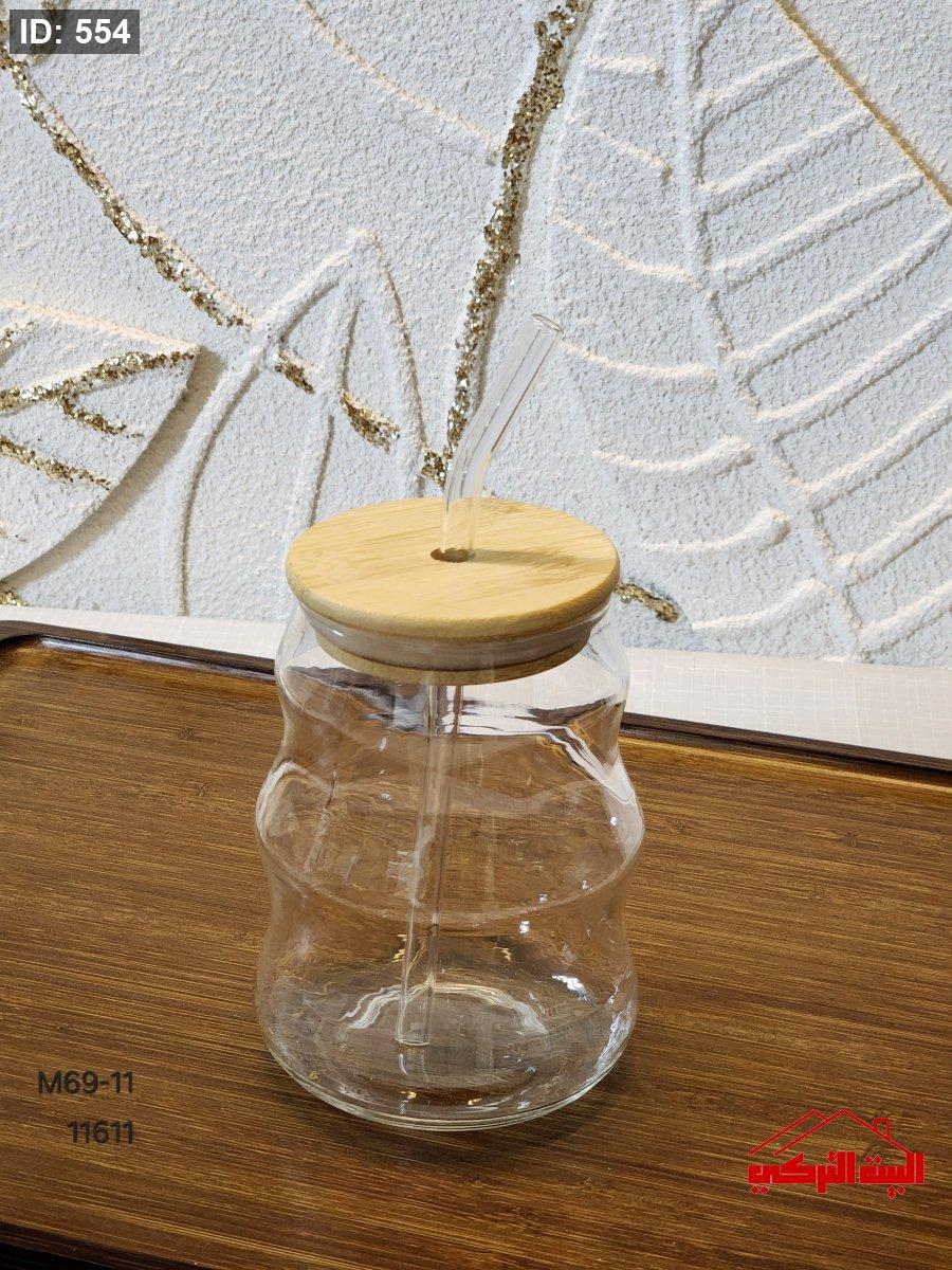 كاسة زجاج مصاصة غطاء خشب بامبو