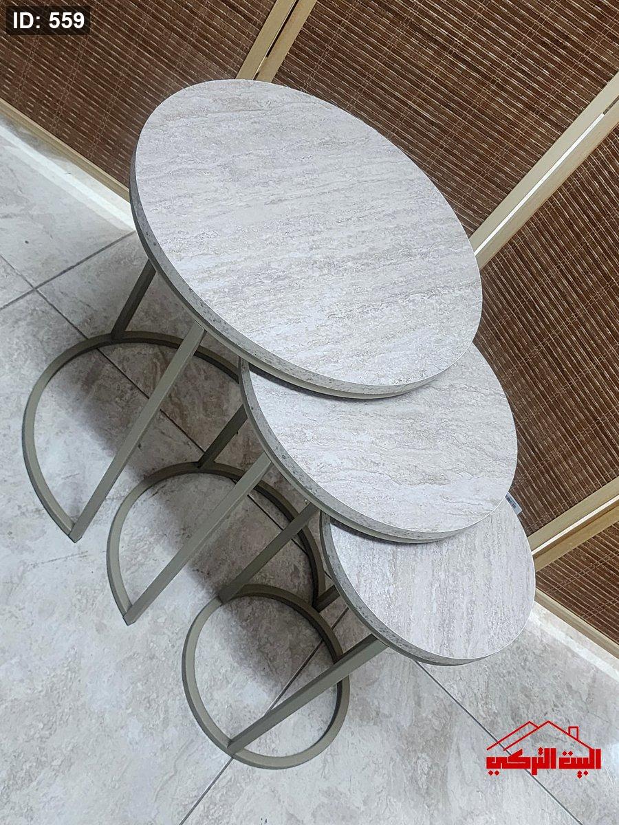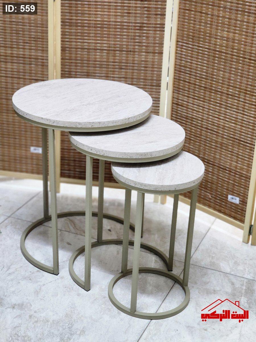 طقم سكملات 3 قطع وجه خشب اطار معدن