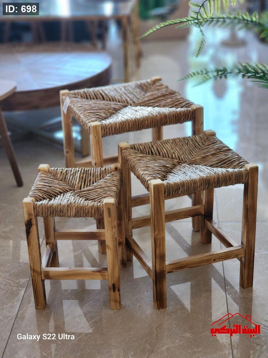 طقم 3 سكملة قش خشب